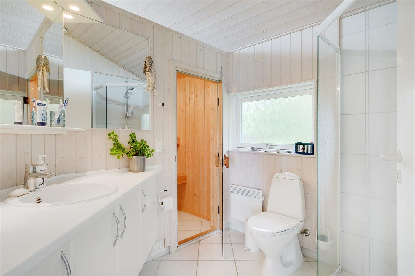 Es gibt 1 Badezimmer mit Duschnische und 1 Toilette.. Fußbodenheizung in 1 Badezimmer. Es steht eine Sauna zur Verfügung in der Sie sich so richtig entspannen können.