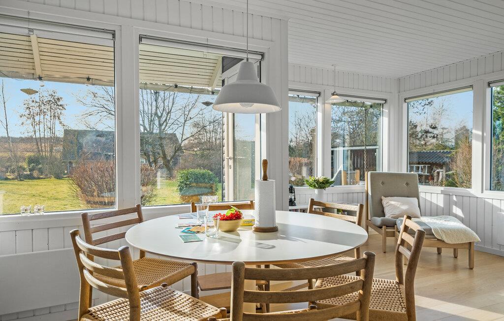 Dieses charmante Ferienhaus begrüßt Sie mit einem hellen und behaglichen Innenbereich. Bereiten Sie in der modernen Küche Ihre Lieblingsmahlzeiten zu und genießen Sie diese im lichtdurchfluteten Essbereich mit Blick in den Garten. Entfachen Sie den Kaminofen, machen Sie es sich mit einem guten Buch auf dem Lesesessel bequem oder verbringen Sie gemeinsame Zeit bei einem Spieleabend im gemütlichen Wohnzimmer.