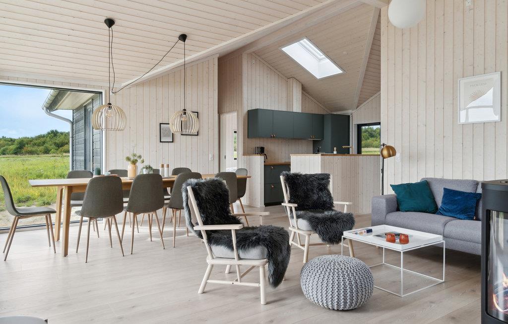 Modernes, gemütliches Ferienhaus in Ulvshale nahe Sandstrand für erholsame Familienzeit in der Natur.