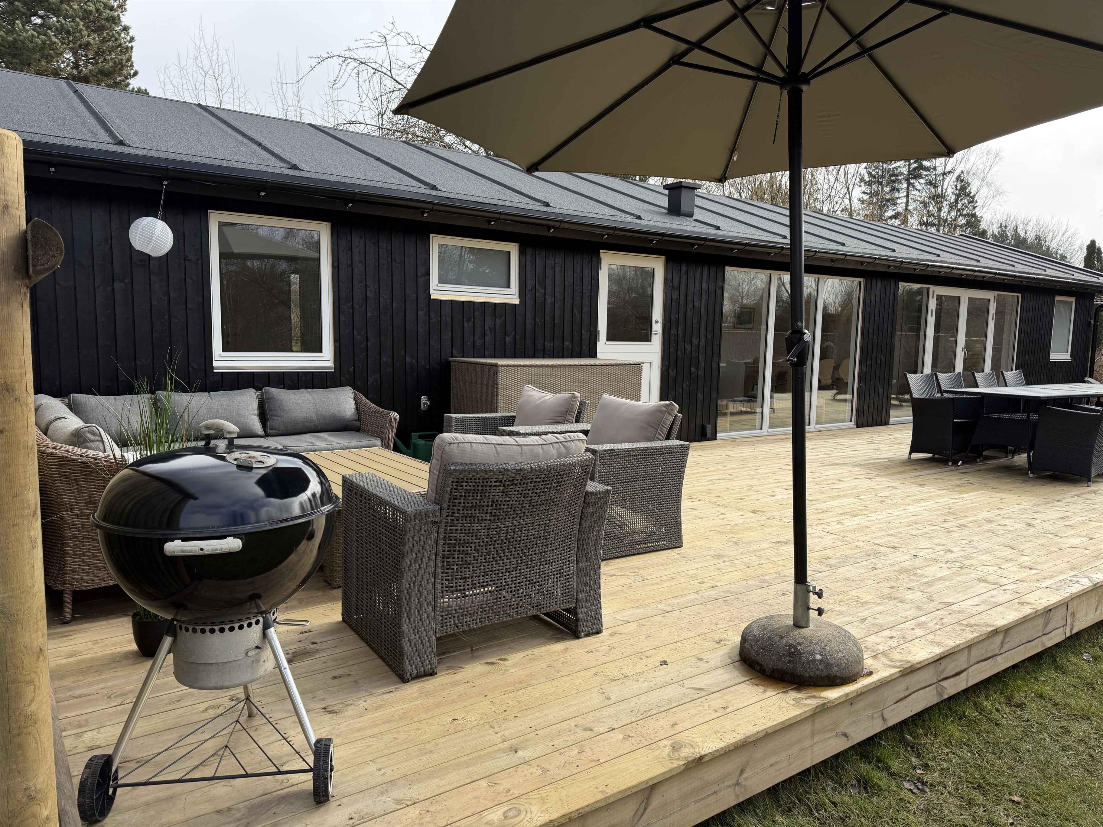 Schönes Ferienhaus mit 90 m², 4 Schlafzimmern und 8 Schlafplätzen. Großes Wohnküchenbereich, 2 Bäder sowie südwestlich ausgerichteter Garten und Terrasse mit Sonne den ganzen Tag. Trampolin und Feuerstelle. Nahe Strand und Wald.