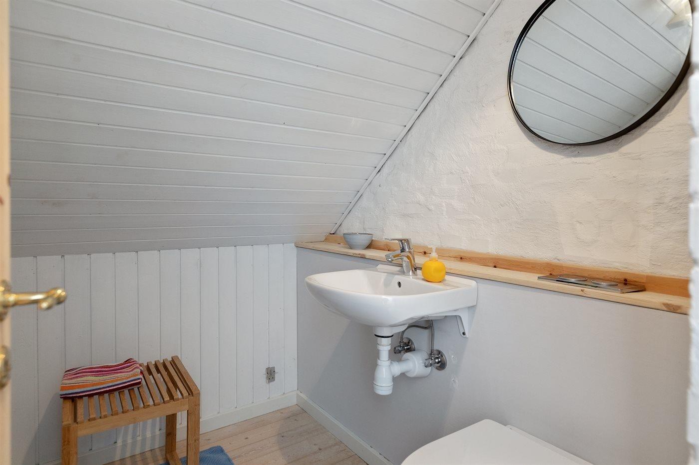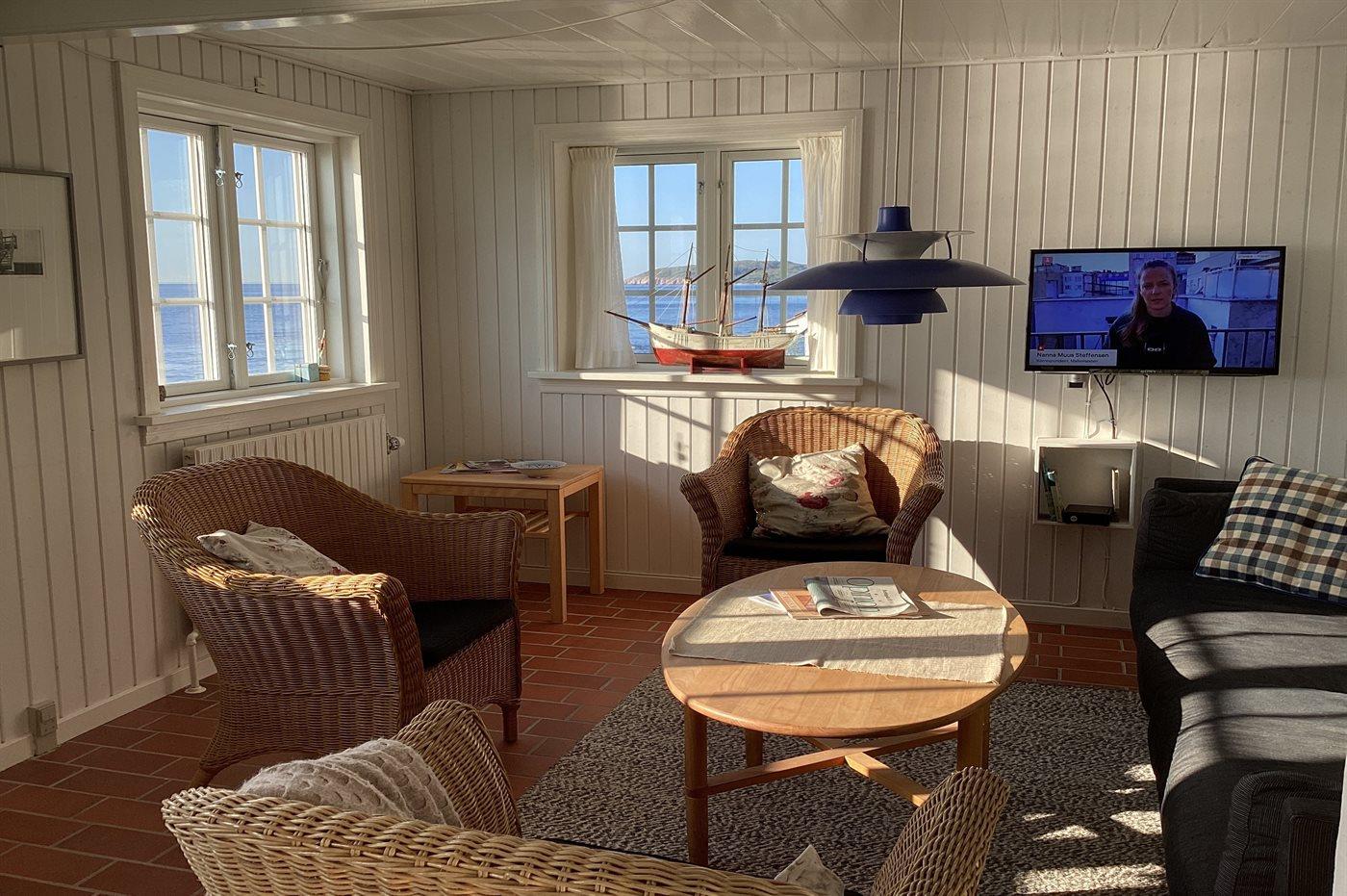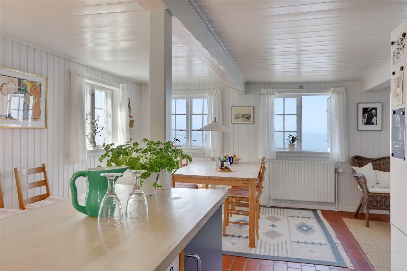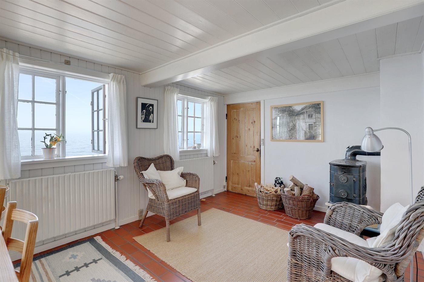 Mit einer einzigartigen Lage direkt am Wasser und einem Panoramameerblick von Haus und Grundstück aus liegt dieses ältere Ferienhaus am Ende einer Sackgasse, von Klippen und ungestörter Natur umgeben. Das Haus hat ein gutes Lichteinfall und es gibt zum Teil niedrige Türen. Die Deckenhöhe sorgt jedoch für ein angenehmes Raumgefühl.