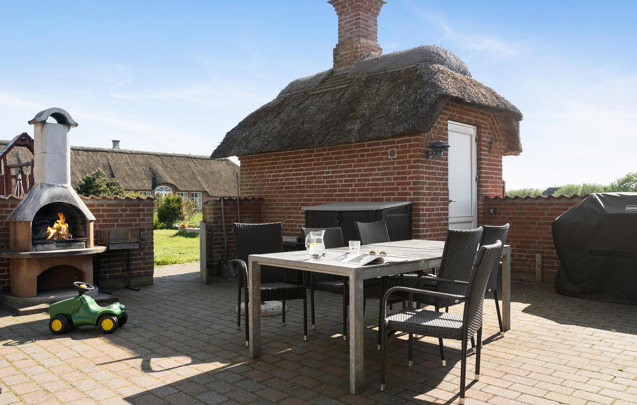 Der großzügige Außenbereich Ihres Ferienhauses ist ideal zum Grillen und für Mahlzeiten im Freien geeignet. Die kleinen Urlaubsgäste kommen auf dem Trampolin und dank der lustigen Spielgeräte auf ihre Kosten. Und auch sonst bietet das großräumige Grundstück gute Möglichkeiten für Spiel und Spaß.