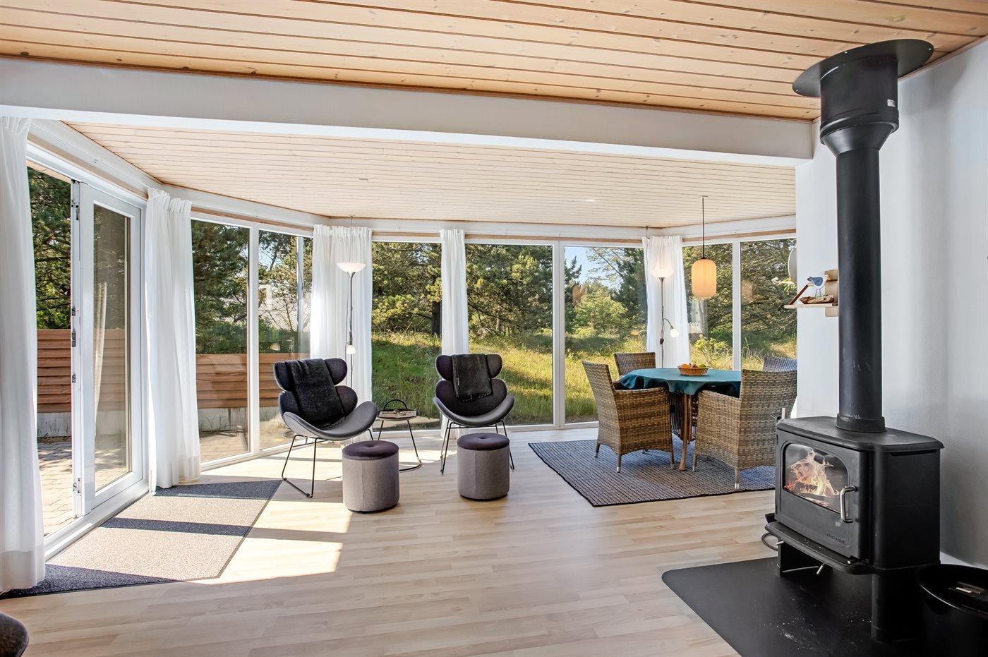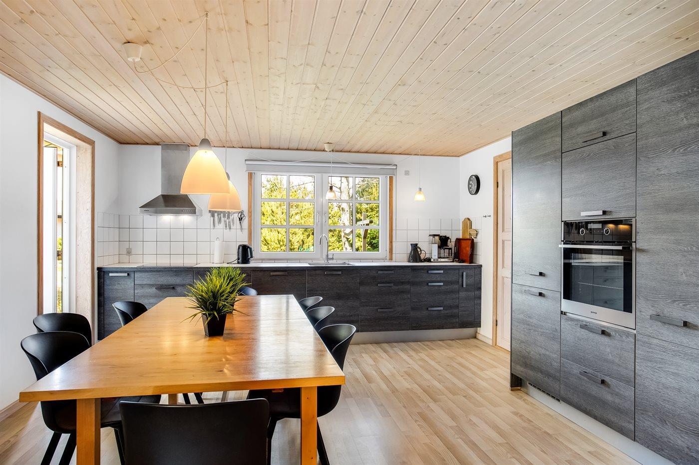 Das Haus hat eine große Wohnküche, die offen an den großen, hellen Wohnbereich angrenzt, wo ein gemütlicher Erker Aussicht auf die schöne Natur bietet.