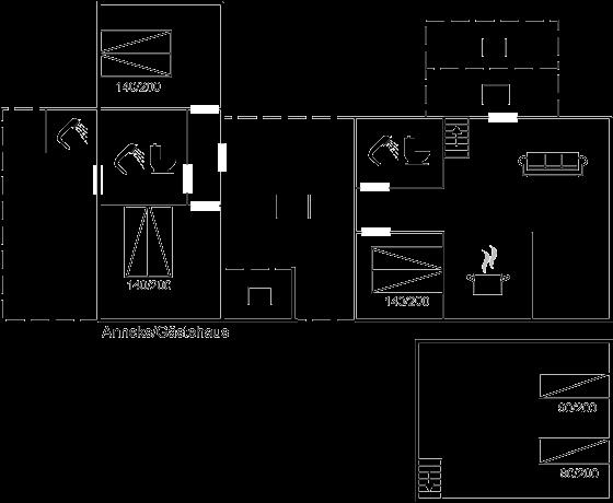 Die Schlafplätze verteilen sich auf 4 Schlafräume. 6 Schlafplätze in Doppelbetten. 2 Schlafplätze in Einzelbetten. 4 dieser Schlafplätze befinden sich in einem Gästehaus(auf 2 Schlafzimmer verteilt). Fußbodenheizung im Gästehaus.