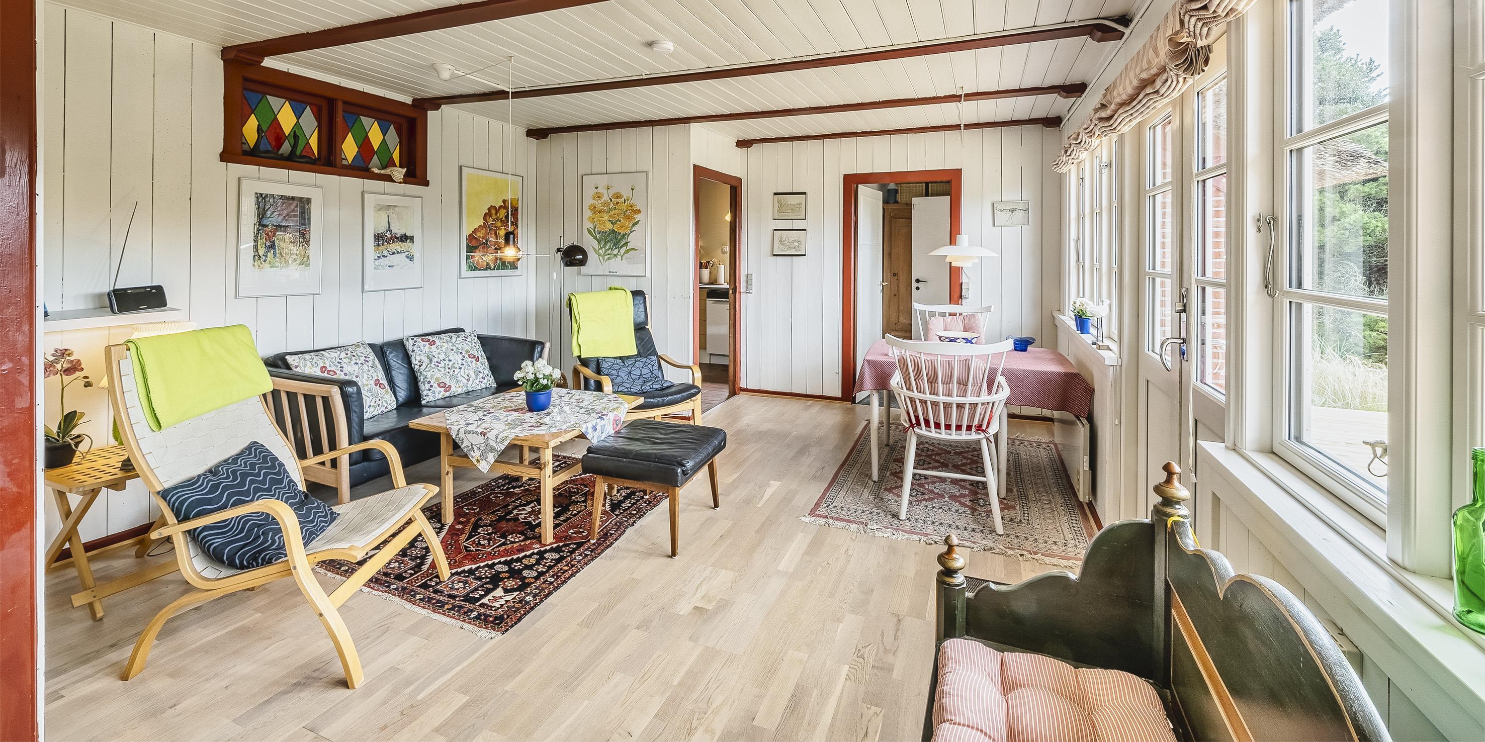 Einfaches gemütliches Reetdach-Ferienhaus mit Namen „Norly“ für 5 Personen ausgestattet. Der Strand ist nur 400 Meter vom Ferienhaus entfernt. Das Ferienhaus befindet sich auf einem 3000 m² großen Grundstück und auf einer Düne.