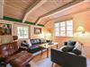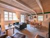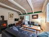 Wohnzimmer mit Holzofen und Zugang zur westlich gelegenen Terrasse