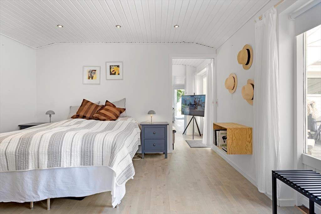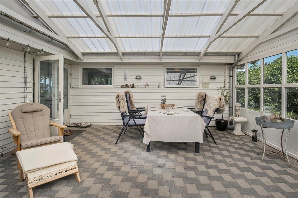 Zusätzlich gibt es ein gemütliches 27 m² großes Wintergarten. Draußen stehen Gartenmöbel, Sonnenschirm und Grill zur Verfügung, und der vordere Teil des Grundstücks ist privat. Der Zugang zum Wasser erfolgt über einen Weg von der Straße.