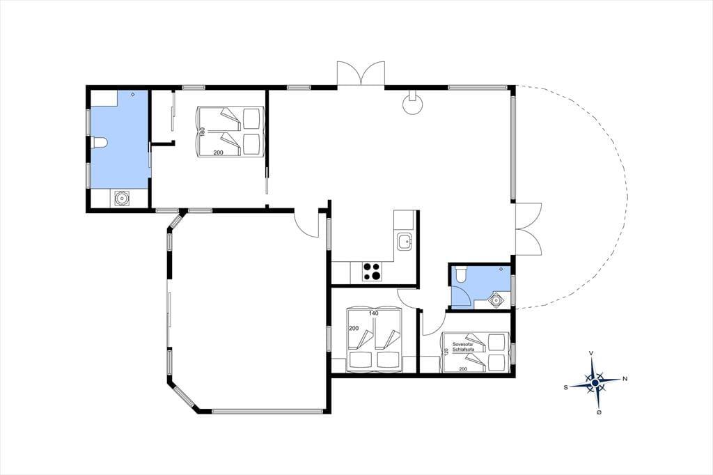 Das Haus verfügt über zwei Badezimmer mit Dusche, eines davon mit Waschmaschine. Es gibt drei Schlafzimmer: zwei mit Doppelbetten und eines mit einem 1½-Personen-Schlafsofa (120x200 cm). Beheizt wird das Haus über Wärmepumpe, Elektroheizung und Pelletkamin.