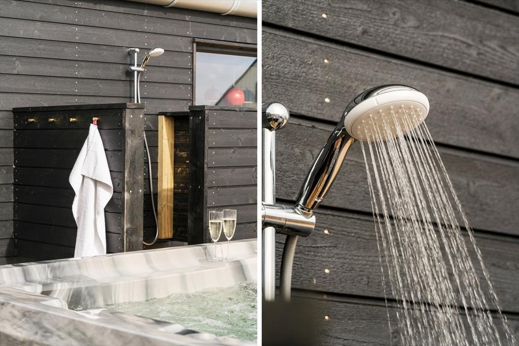 Das Ferienhaus liegt auf einem wunderschönen Naturgrundstück, das reichlich Platz zum Spielen und Entspannen bietet. Die Terrasse verläuft fast rund ums Haus, und der große, teilweise überdachte Bereich nach Süden lädt zu langen Sonnentagen oder gemütlichen Grillabenden mit der Familie ein – auch wenn das Wetter mal wechselhaft sein sollte. Der luxuriöse Außenwhirlpool und die Außendusche ermöglichen dir ein Wellness-Erlebnis unter freiem Himmel, während die Schaukel und das Trampolin im Garten dafür sorgen, dass bei den kleinen Gästen keine Langeweile aufkommt. Hier ist für jeden etwas dabei – und sowohl Kinder als auch Erwachsene können das Leben im Freien in privater und sicherer Umgebung in vollen Zügen genießen.