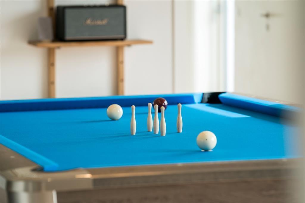 Das luxuriöse Ferienhaus ist mit Fokus auf Komfort und gemeinsames Beisammensein eingerichtet. Vom großen Wohnbereich, in dem Küche und Wohnzimmer offen miteinander verbunden sind, hast du direkten Zugang zum Aktivitätsraum des Hauses – ein echtes Highlight für alle Spielkinder. Hier könnt ihr euch in Shuffleboard und Billard messen, während sich der Rest der Familie auf dem Sofa entspannt oder gemeinsam kocht. Große Fensterfronten sorgen für viel Tageslicht und lassen euch den Wechsel der Natur draußen mitverfolgen – auch wenn ihr es euch drinnen gemütlich macht. Nach einem langen Tag am Strand oder in den Dünen könnt ihr den Tag entspannt in der hauseigenen Sauna ausklingen lassen – oder euch im Outdoor-Whirlpool unter dem Sternenhimmel ein warmes Bad gönnen. Hier ist an alles gedacht – sowohl für aktive als auch ruhige Ferientage.