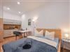 Sie besteht aus einem kombinierten Wohn-/Schlafraum mit integrierter Küchenzeile und einem Bad mit Dusche/WC.
