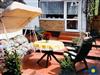 Die Sonnenterrasse samt Grillmöglichkeit ist sowohl über das Terrassenfenster im Wohnzimmer als über den Hauseingang zu erreichen.