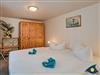 Den Schlafraum mit dem großen Doppelbett erreichen Sie über die Küche. Hier stehen zudem genügend Ablagemöglichkeiten für Ihre Urlaubsgarderobe bereit.
