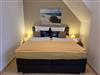 • Im Obergeschoss befinden sich zwei Schlafräume mit je 2 Schlafplätzen. Ein Schlafzimmer ist ausgestattet mit Doppelbett, Nachttischen und einem großen Kleiderschrank. Der andere Schlafraum verfügt über zwei Einzelbetten, Nachttische, Schreibtisch und einen Kleiderschrank.
