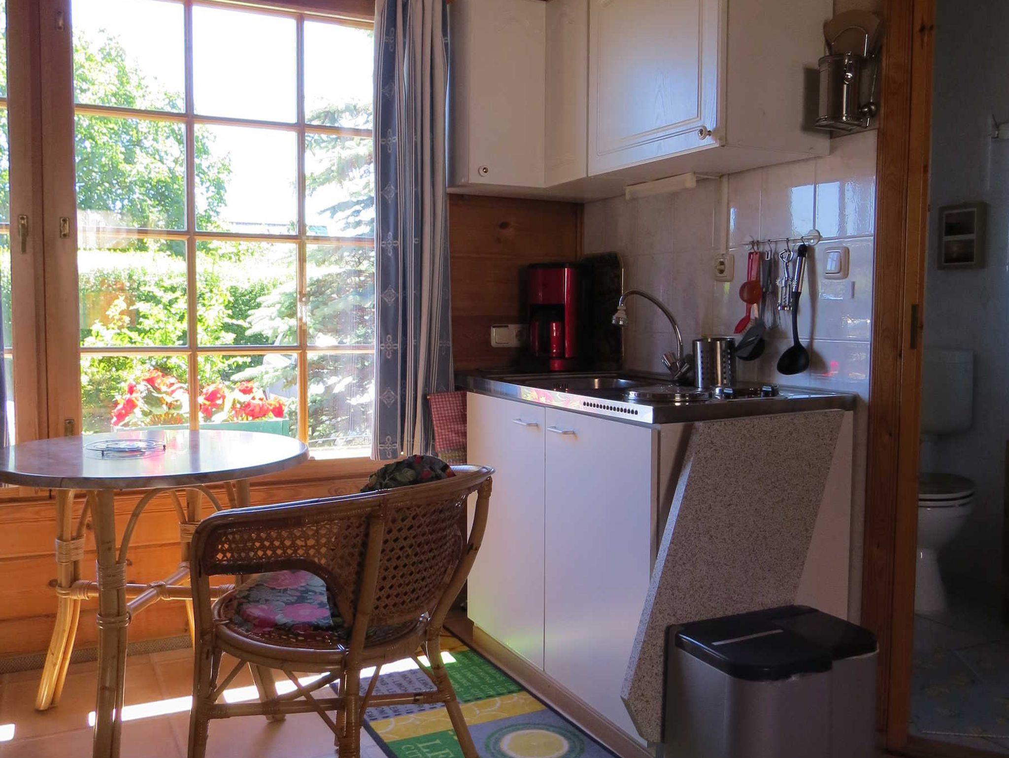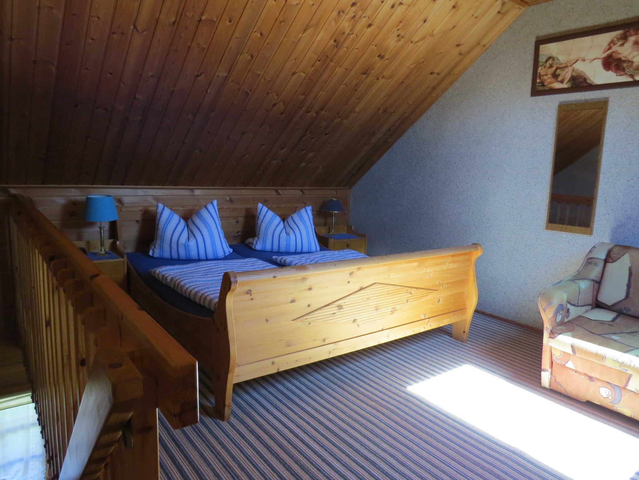Maisonetten-Ferienwohnung für bis zu 3 Personen mit separatem Eingang. Die Fewo besteht aus 1 Schlafzimmer mit einem Doppelbett und einem Einzelbett in der oberen Etage, sowie einem Wohnzimmer mit Küchenzeile (TV, Couch, Küchentisch mit 3 Stühlen), Du/WC in der unteren Etage. Bettwäsche ist inklusive. Handtücher bitte mitbringen. Nichtraucher sind erwünscht (Rauchmöglichkeit auf überdachter Eingangsterrasse). Haustiere sind nicht erlaubt.