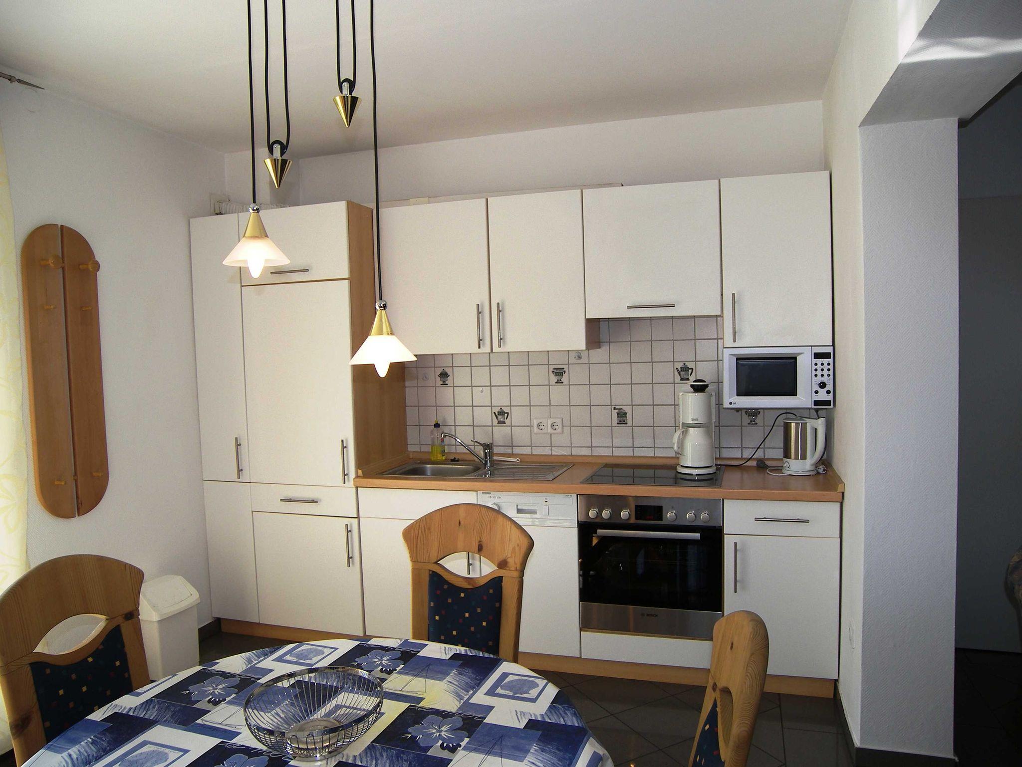 Genießen Sie die gemütliche Atmosphäre in unserer sehr gut ausgestatteten, ca. 55 m² großen Ferienwohnung für 4 Personen, mit 2 getrennten Schlafzimmern (1 x Doppelbett, 1 x mit getrennt stehenden Betten). Der großzügige Wohnraum und die Küche sind komplett mit allen gebräuchlichen Haushalts- und Einrichtungsgegenständen ausgestattet. Dazu gehört selbstverständlich auch ein Cerankochfeld, Backofen, Mikrowelle, Geschirrspüler, Kühlschrank mit Gefriermöglichkeit, Wasserkocher, Toaster und Kaffeemaschine. Die Wohnung hat WLAN & Direktwahltelefon. Sämtliche Räume sind mit hochwertigen Fliesen ausgestattet und der Wohnraum verfügt über eine Fußbodenheizung und einen Kamin. Durch eine breite Terrassenschiebetür haben Sie Zugang zum Terrassenbereich, der sich wunderbar zum morgendlichen Frühstück oder zum Sonnen eignet.