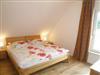 Im Obergeschoss befinden sich zwei Schlafzimmer sowie ein Bad. Ein Schlafzimmer mit Doppelbett aus Massivholz (Breite 1,80 m). Das zweite Schlafzimmer verfügt über ein weiteres Bett (Breite 1,40 m). Im ausgebauten Spitzboden stehen 2 weitere Schlafmöglichkeiten bereit: Ein Einzelbett (Breite 1 m) sowie ein Bett (Breite 1,40 m). Der Spitzboden ist auch ideal als Spielhöhle für Kinder geeignet. Der Zugang zum Spitzboden erfolgt über eine Raumspartreppe (kein abgeschlossenes Zimmer). Eine weitere vollwertige Schlafmöglichkeit besteht im Wohnzimmer durch ein hochwertiges Einzelbett.