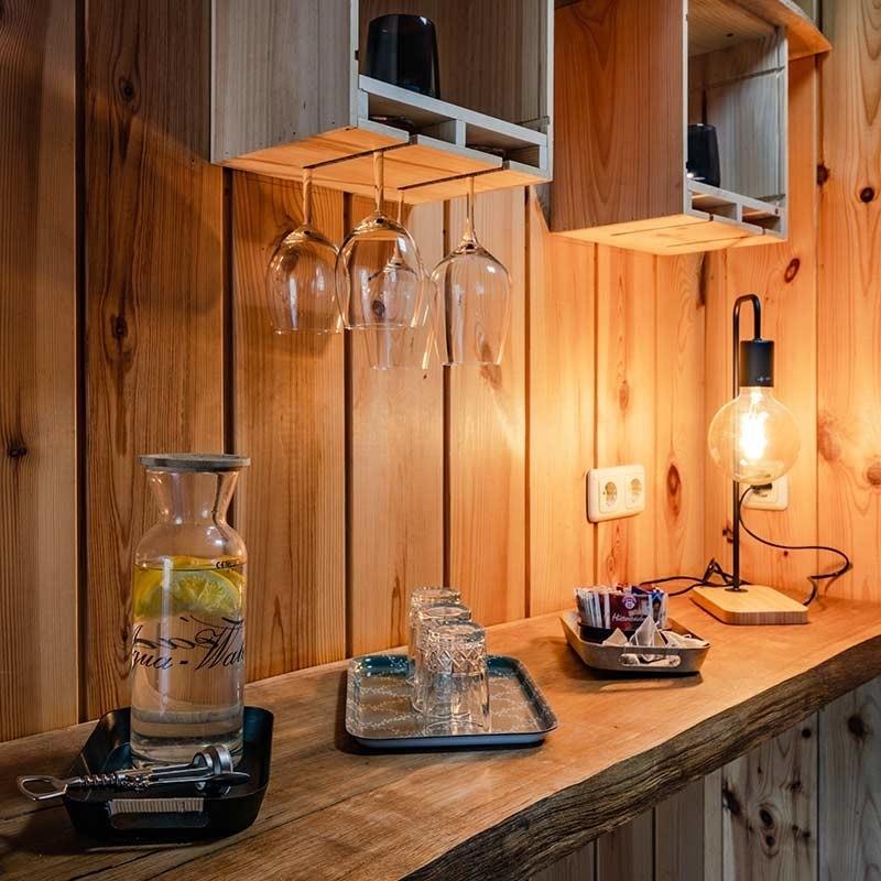 Das Ferienhaus Bernstein bietet Platz für 2 Personen. Hier können Sie auch ihre Fellnase mitbringen. Es verfügt über ein offenes Wohnraumkonzept mit einer offenen kleinen Küchenzeile, die ihnen alles bietet, um sich auch selbst gut versorgen zu können. Im Wohnraum finden sie ein schönes Plätzchen zum Sitzen und auch eine große gemütliche Eckcouch zum Entspannen. Das kleine Badezimmer mit Fenster, ist mit WC und Dusche ausgestattet. Im Schlafzimmer finden sie ein großes Doppelbett mit einer guten Einstiegshöhe und viel Schlafkomfort. Der eigens getischlerte Kleiderschrank bietet viel Ablagefläche für ihr Reisegepäck.