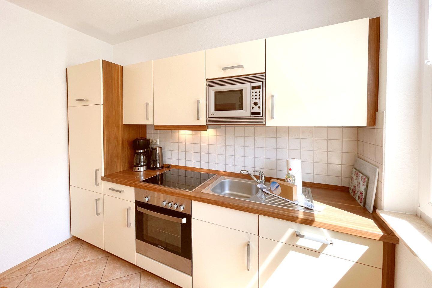 Die Wohnung erstreckt sich über eine Fläche von 44 m² und bietet Platz für bis zu drei Personen. Sie verfügt über ein Schlafzimmer, ein modernes Badezimmer und ein lichtdurchflutetes Wohnzimmer, das einladend und komfortabel gestaltet ist. Die offene Küche wurde mit modernen Geräten ausgestattet, darunter ein Cerankochfeld, ein Backofen, eine Spülmaschine sowie eine Mikrowelle – alles, um Ihnen den Aufenthalt so angenehm wie möglich zu gestalten. Für gesellige Mahlzeiten ist der Essbereich ideal, und die Sofaecke lädt zum Entspannen nach einem aufregenden Tag an der Ostsee ein.