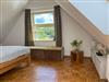 Ein angrenzendes Schlafzimmer mit einem komfortablen Doppelbett und einem TV-Gerät sowie ein stilvoll gestaltetes Badezimmer mit Badewanne, Dusche, WC und Waschtisch runden das Angebot auf dieser Etage ab.