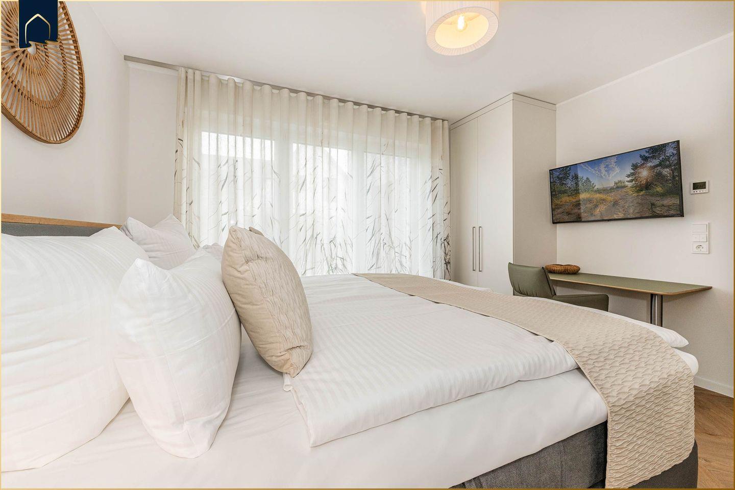 Auf 110?m² Wohnfläche erwarten Sie drei geschmackvoll eingerichtete Schlafzimmer, zwei moderne Tageslichtbäder mit Dusche und WC sowie ein lichtdurchfluteter Wohn- und Essbereich mit direktem Zugang zur möblierten Terrasse und dem gepflegten Garten. Die hochwertige, voll ausgestattete Küche lässt keine Wünsche offen – von Spülmaschine über Backofen mit integrierter Mikrowelle und Toaster bis hin zur Kaffeemaschine ist alles vorhanden, um kulinarische Genüsse auch im Urlaub ganz einfach zu zaubern. Der große Esstisch bietet ausreichend Platz für gemeinsame Mahlzeiten mit Familie oder Freunden. Eine Fußbodenheizung im gesamten Haus sorgt dabei für angenehme Wärme zu jeder Jahreszeit.