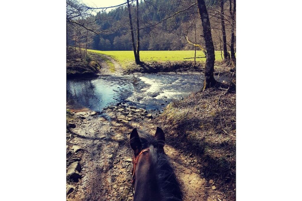 Sie befinden sich in ruhiger Ortsrandlage und können in der warmen Jahreszeit die großzügig angelegte Wiese an der Südwestseite des Hauses zum Sonnenbad und Essen im Freien nutzen. Ihre Ferienwohnung liegt im Erdgeschoss eines einstöckigen ehemaligen Bauernhauses. Zwei bis drei Erwachsene finden angenehme Entspannung, wobei dem dritten Erwachsenen im Wohnzimmer eine Schlafmöglichkeit in der dann schnell und bequem vorzurichtenden Wohnlandschaft gegeben ist. Auf Wunsch stellen wir ein Kinderbett zur Verfügung.