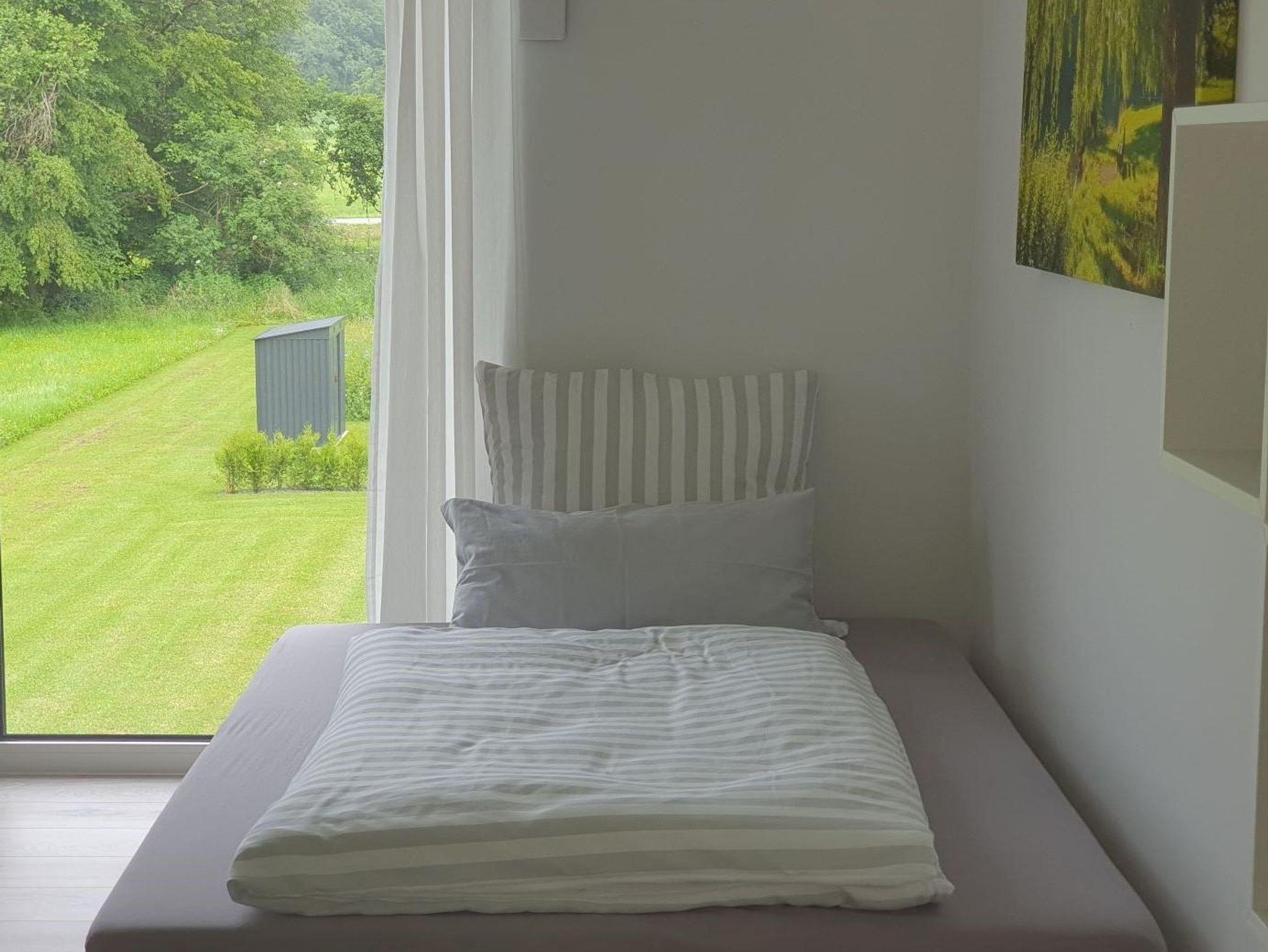 Das Haus (Neubau 2019) befindet sich in ruhiger Ortsrandlage und grenzt an ein kleines Waldstück (Weiße Ley). Ab und an lassen sich dort auch einige Bewohner der Eifelwälder blicken, welche sich mit etwas Glück dann auch beobachten lassen. Die 600m² große Wiese an der Südseite des Hauses lädt in der warmen Jahreszeit zum Sonnenbaden ein.Unsere drei modern eingerichteten Ferienwohnungen mit kontrollierter Wohnraumlüftung sind allergikergerecht.