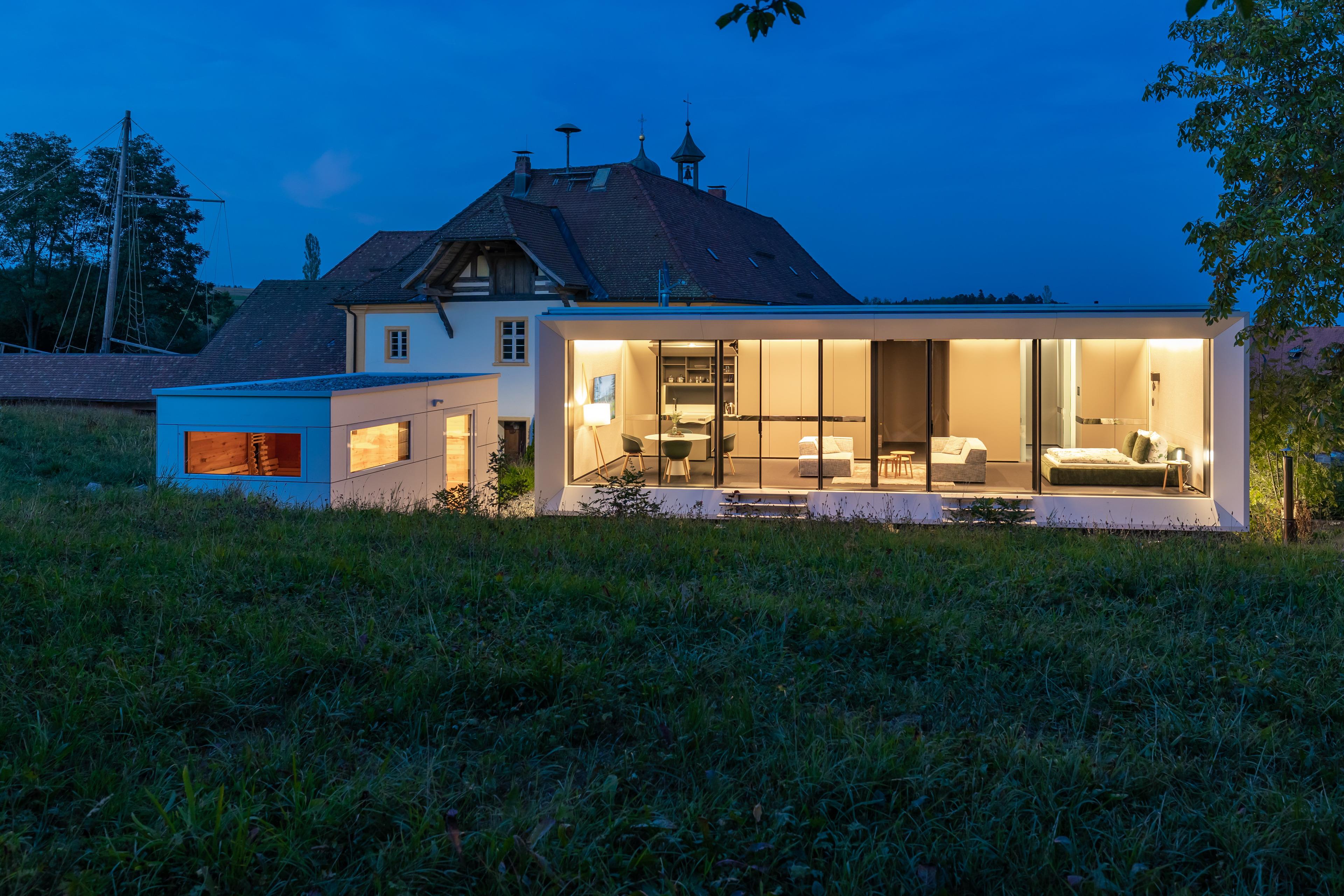 Genießen Sie die ausergewöhnliche, nicht alltägliche, hochwertige Architektur und Einrichtung mit Aussensauna und Hottube.