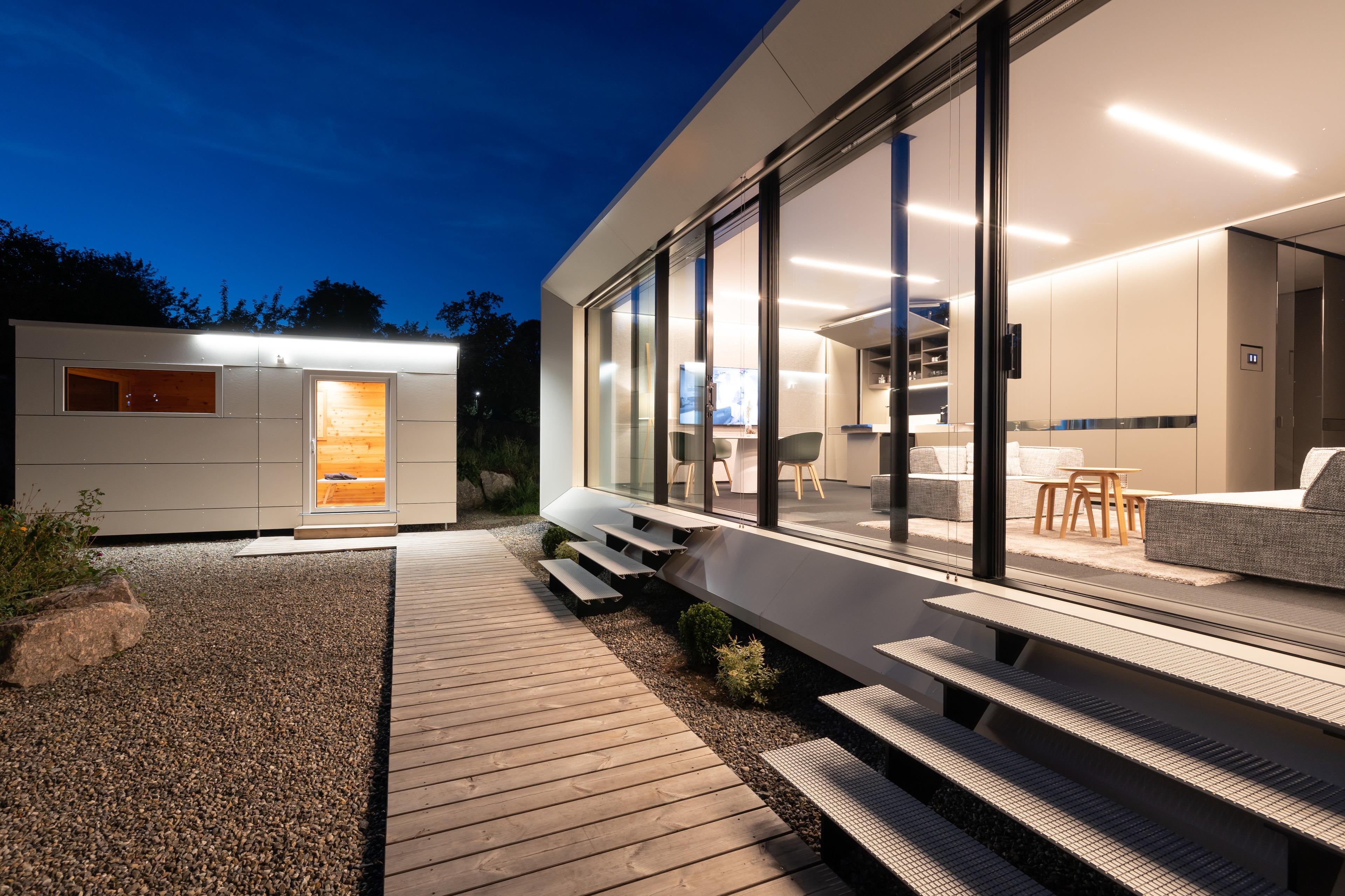 Enjoy the exceptional, not everyday, high-quality architecture and furnishings with outdoor sauna and hot tub.