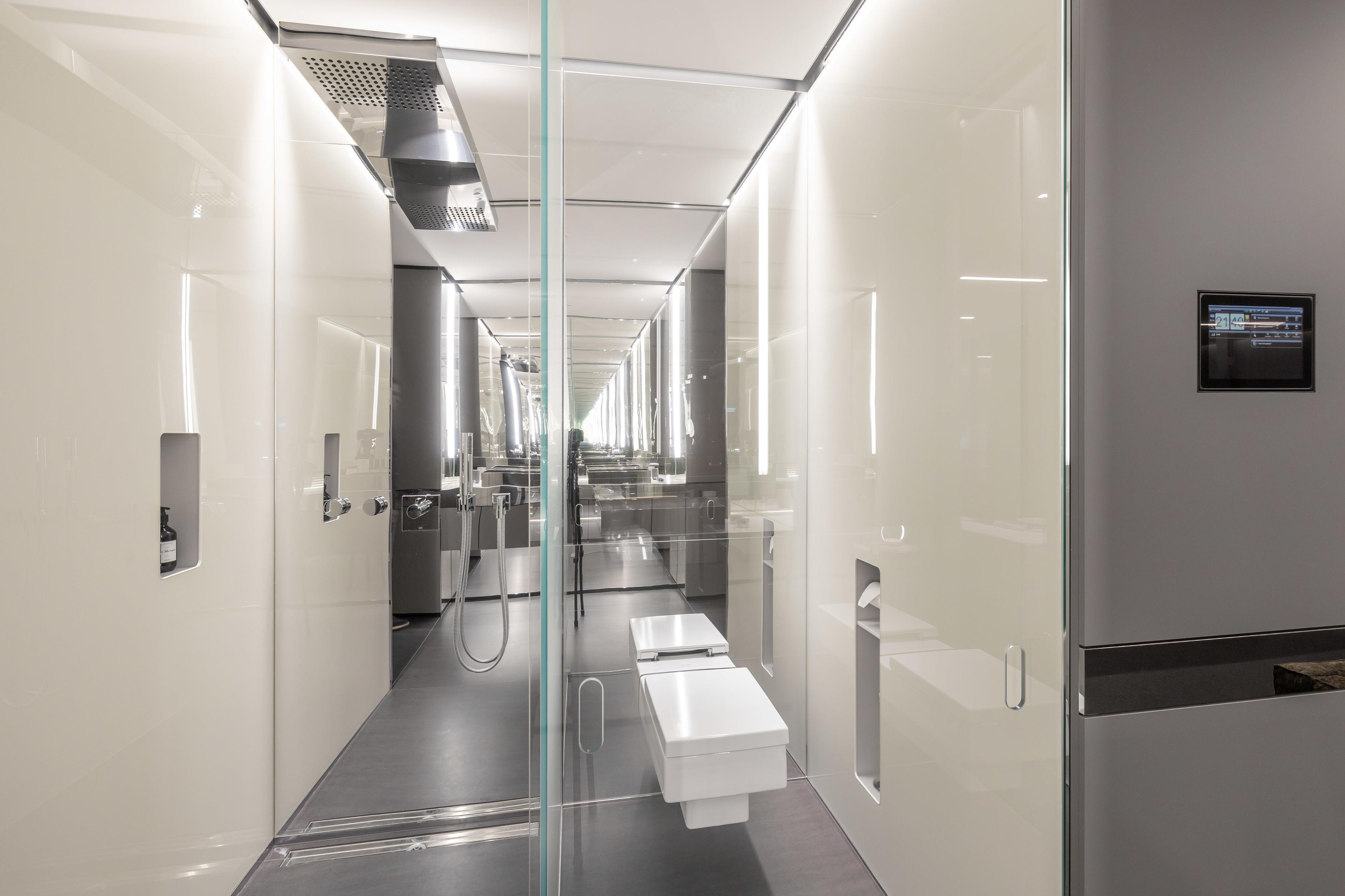 - bathroom with floor-level shower, WC