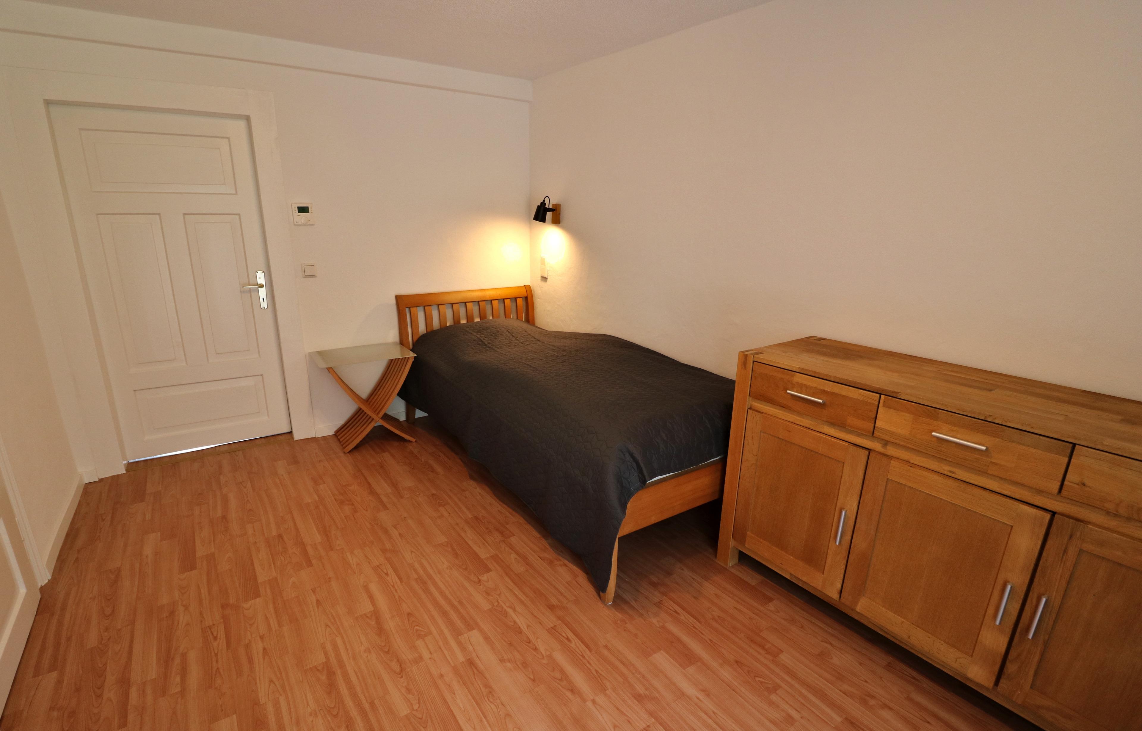 On the ground floor you will find a bedroom with a comfortable double bed. You can reach the bedroom via a small staircase by the kitchen (the open access can be closed by a curtain).