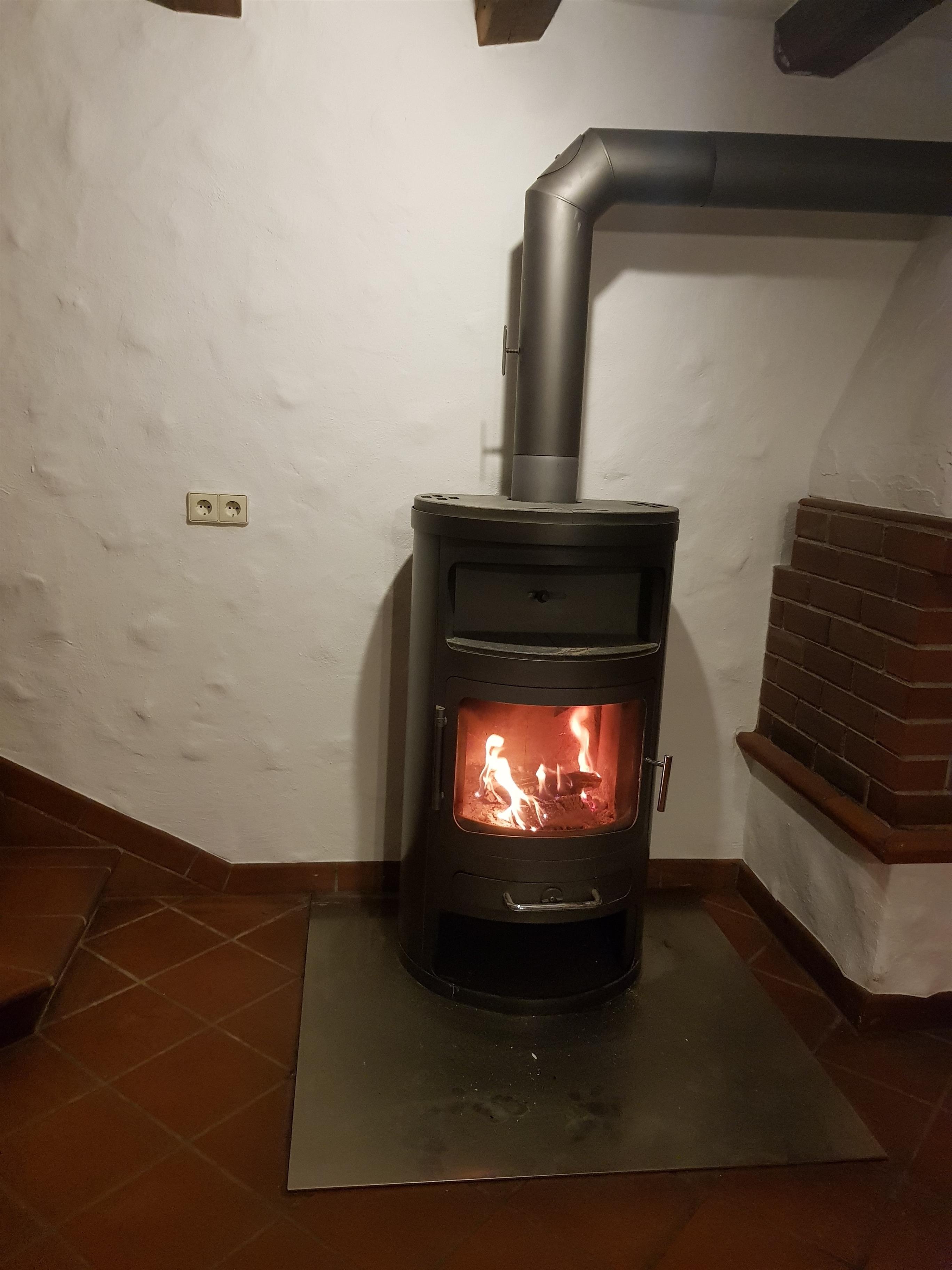 The spacious ground floor has a cosy living room/bedroom with TV, comfortable sofa, which can also be used as a sofa bed (135x200), a dining area and a wood-burning stove, which provides cosy warmth in the colder months.