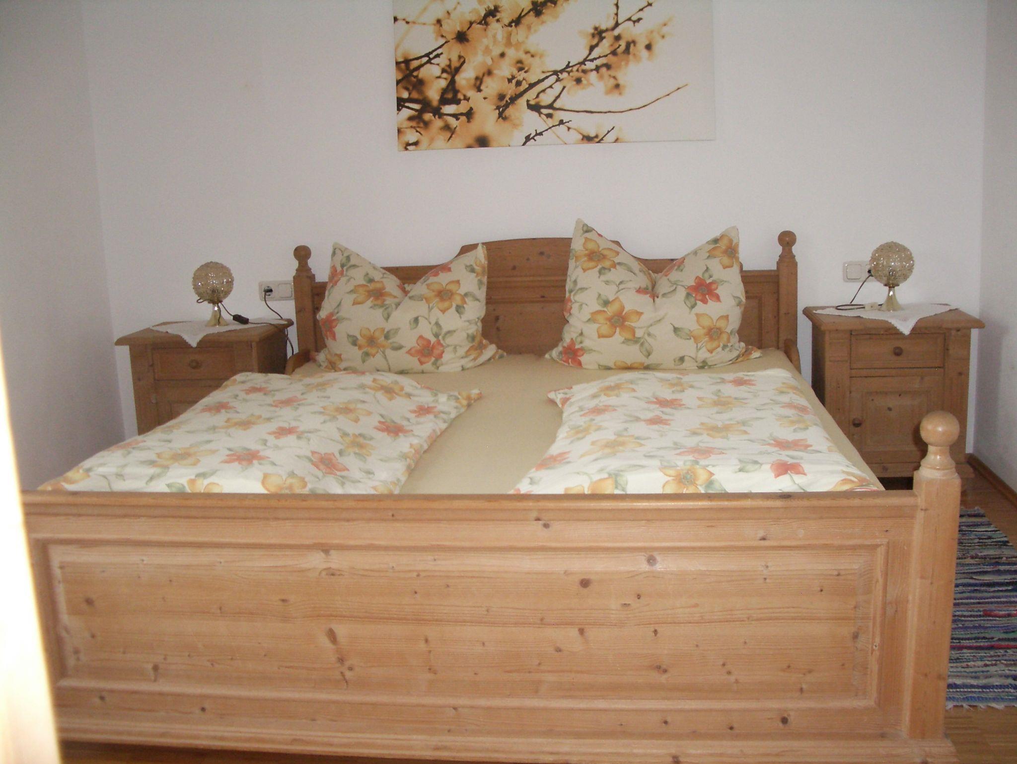 Unsere große Ferienwohnung (ca. 66 qm) Silberdistel mit 2 Schlafräumen (ein Schlafzimmer mit Doppelbett, ein Schlafzimmer mit 3 Einzelbetten), 1 Wohnzimmer mit gut ausgestatteter Küchenzeile und Südbalkon, DU/WC, ist für bis zu 5 Personen geeignet. Das Doppelbett im Schlafzimmer hat Überlänge.