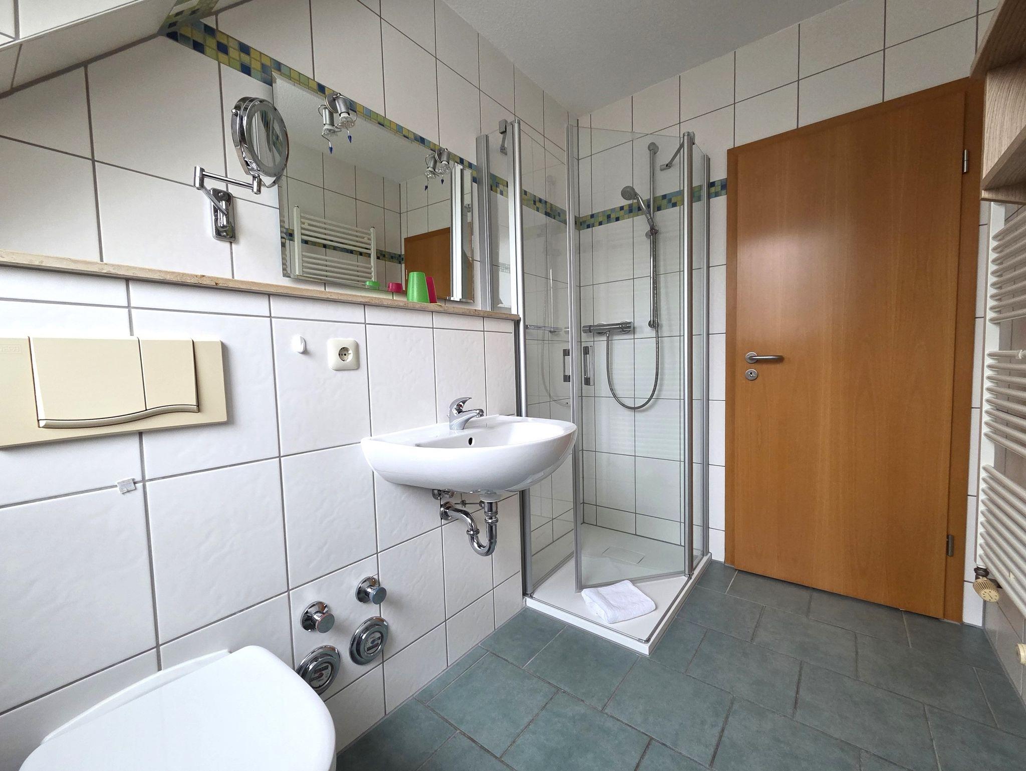 Die Ferienwohnung ?Claudia? befindet sich im 2. Obergeschoss mit Blick in den Garten und ist ca. 72m² groß. Im gemütlichen Wohnbereich befinden sich neben der Couch und dem Flachbildfernseher auch die offene Küchenzeile mit Backofen, Herd, Kühl-/Gefrierschrank, Mikrowelle, Kaffeemaschine, Toaster, Wasser- und Eierkocher und der Essbereich. Vom Wohnzimmer aus erreichen Sie den möblierten Balkon. Im Schlafzimmer befinden sich ein Doppelbett und ein Kleiderschrank mit Tresor für Ihre Wertsachen. Über eine Raumspartreppe erreichen Sie das 2. Schlafzimmer mit Doppelbett, einem Kleiderschrank sowie einen kleinen Tisch mit 2 Stühlen. Das Badezimmer ist mit einer Dusche, einem Fön und einem Kosmetikspiegel ausgestattet, die Fußbodenheizung sorgt für angenehme Wärme. Die Erstausstattung Bettwäsche und Handtücher sind bereits im Preis enthalten. Die Ferienwohnung verfügt über Internetzugang via W-LAN ist kostenfrei nutzbar.