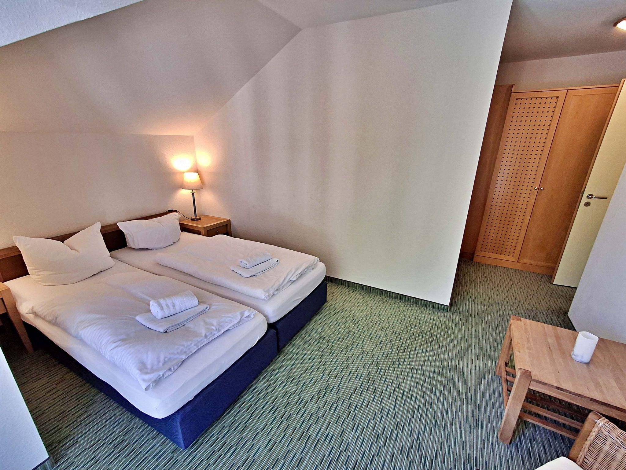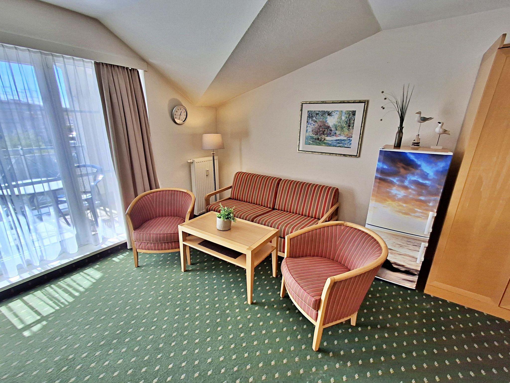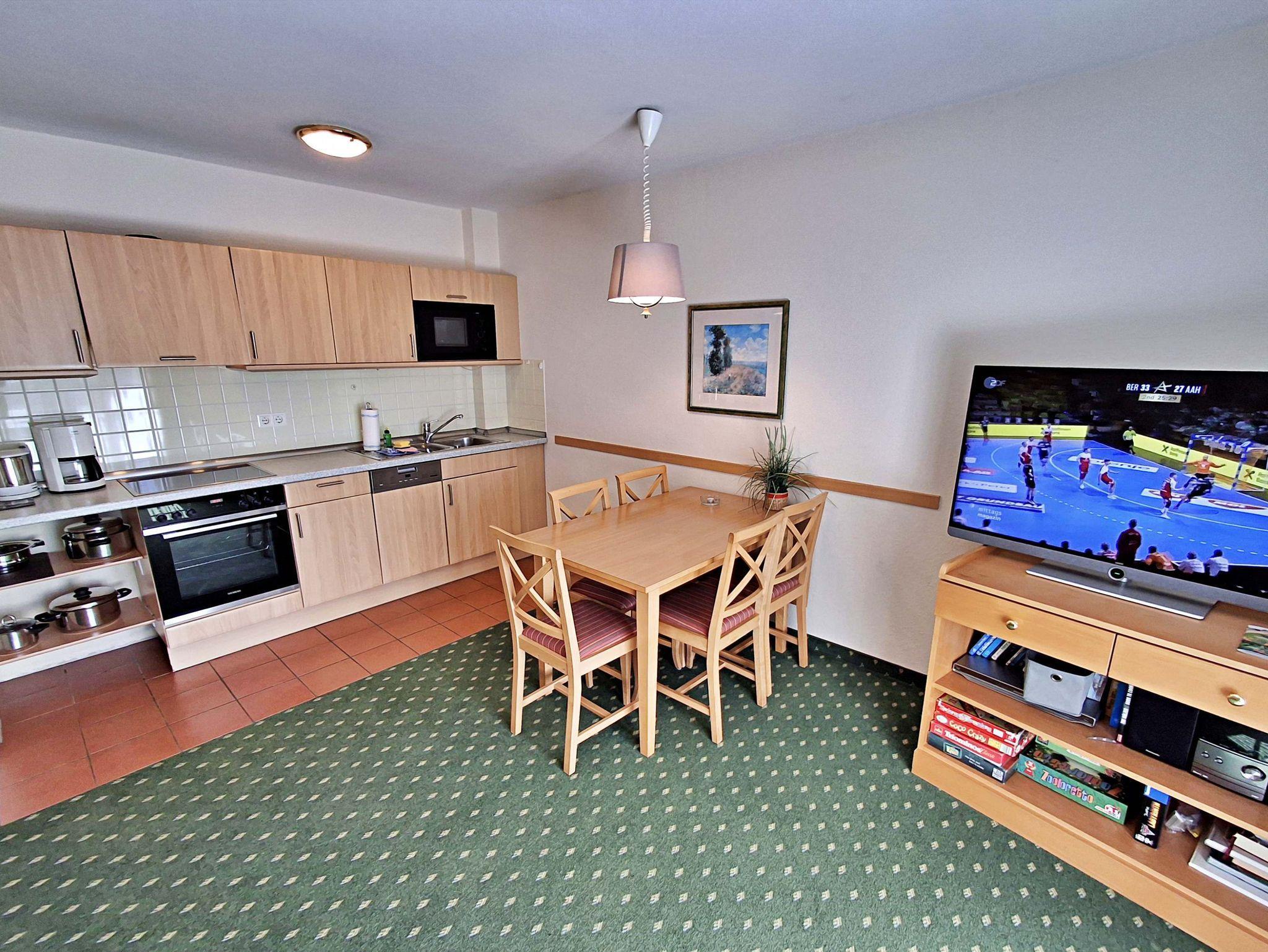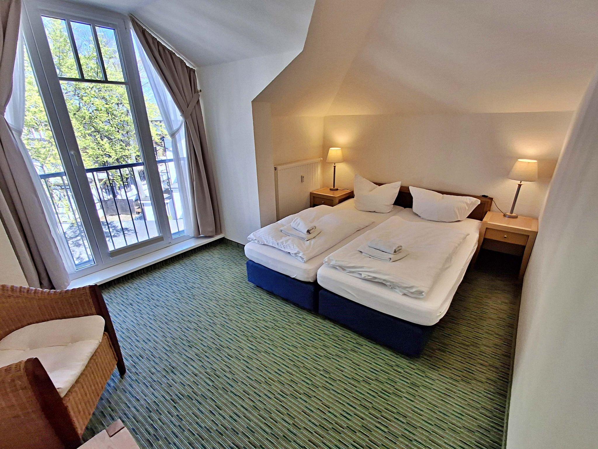 Die 68 qm große 3-Raum-Ferienwohnung (Süd-Ost-Seite) befindet sich im 3. OG der Appartementanlage und ist für 5 Personen (4 Erwachsene und ein Kind bis 10 Jahre) ausgestattet. Der Aufzug fährt bis zum 2. OG. Die Wohnung befindet sich in der 3. Etage. Der Aufzug fährt bis zum 2.OG. Die Wohnung verfügt über ein Wohnzimmer mit Sofa, Sessel sowie Esstisch mit 4 Stühlen. Für die Unterhaltung sorgen ein Flachbild-TV, eine Stereo-Anlage und DVD-Player. Die vollständig ausgestattete Küchenzeile mit Ceranherd, Backofen, Mikrowelle, Spülmaschine und Kühlschrank mit Gefrierfach lässt keine Wünsche offen. Im ersten Schlafzimmer befindet sich ein Doppelbett und im zweiten Schlafzimmer zwei Einzelbetten. Das Tageslicht-Bad ist mit Dusche/WC und Haarfön ausgestattet. Eine Loggia lädt zum Sitzen und Verweilen ein und komplettiert die Ausstattung der Wohnung. WLAN steht in der gesamten Wohnung kostenfrei zur Verfügung.
