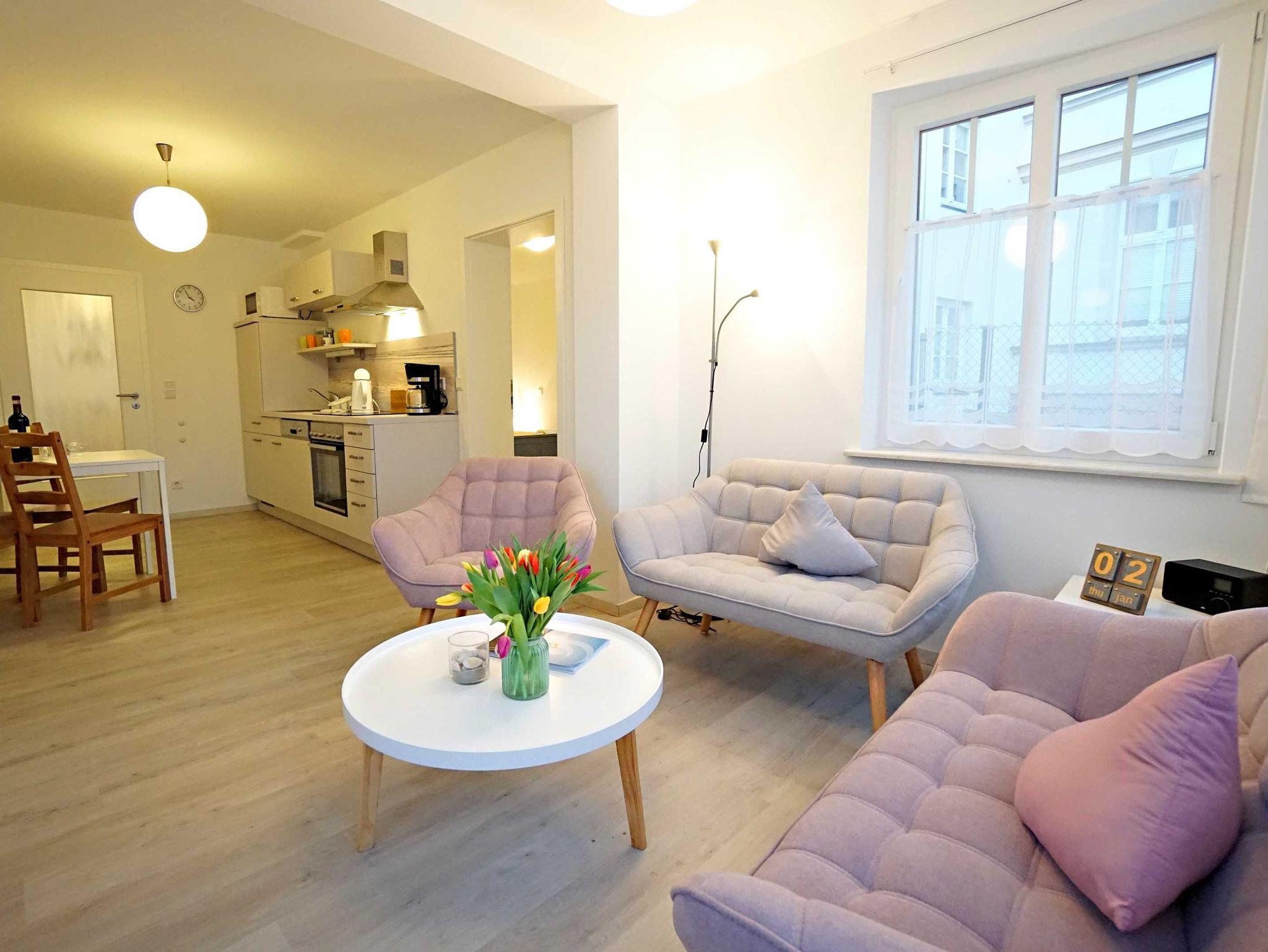 an der Dünenstraße, um den Charme der Kaiserbäder eindrucksvoll und unverfälscht widerzuspiegeln. Das historische Ambiente bietet beste Voraussetzungen für einen gelungenen Urlaub. Die Wohnungen sind modern und komfortabel eingerichtet und verfügen jeweils über 2 Schlafzimmer, Diele, Bad,Wohnzimmer mit Küchenzeile.