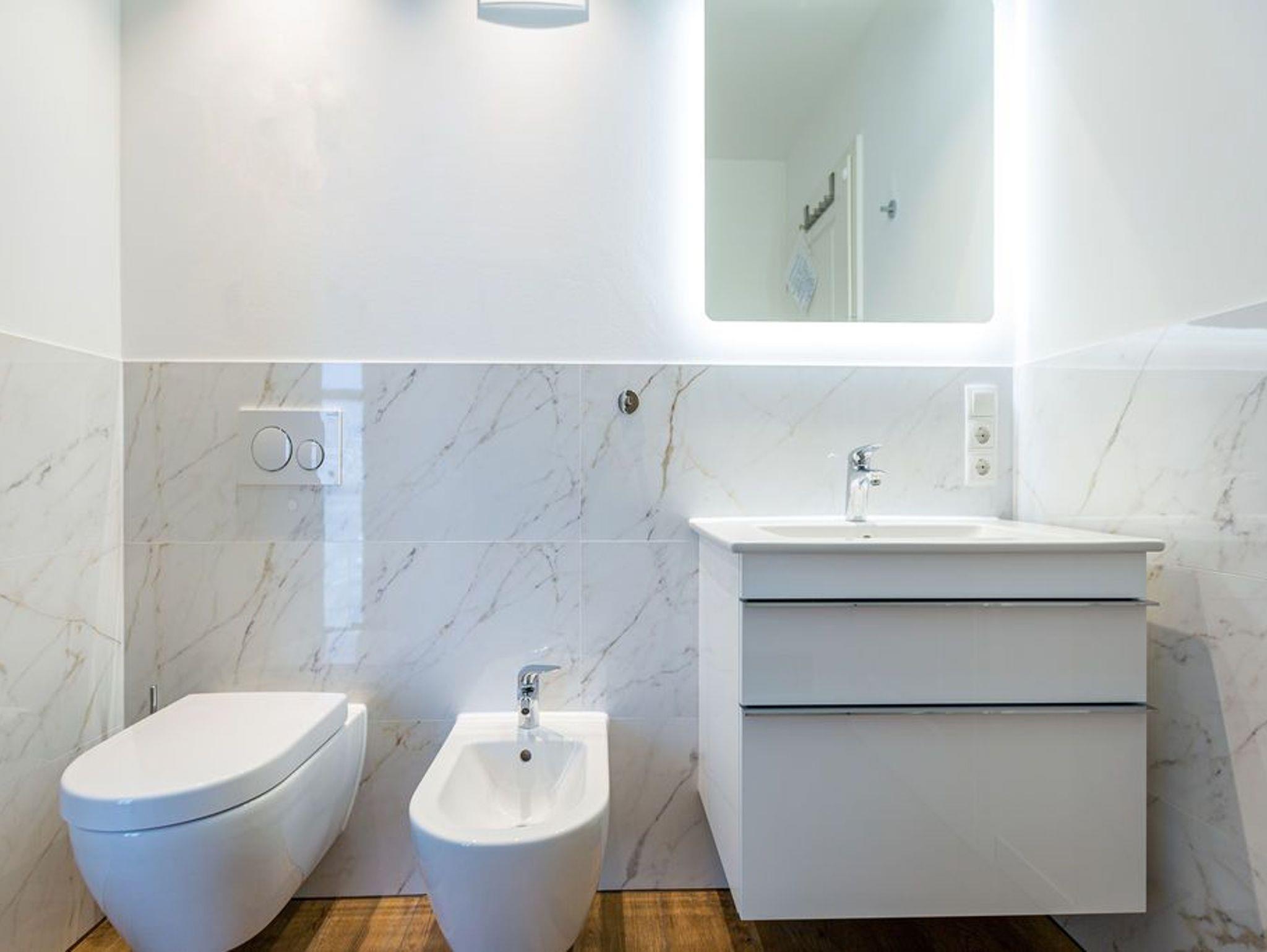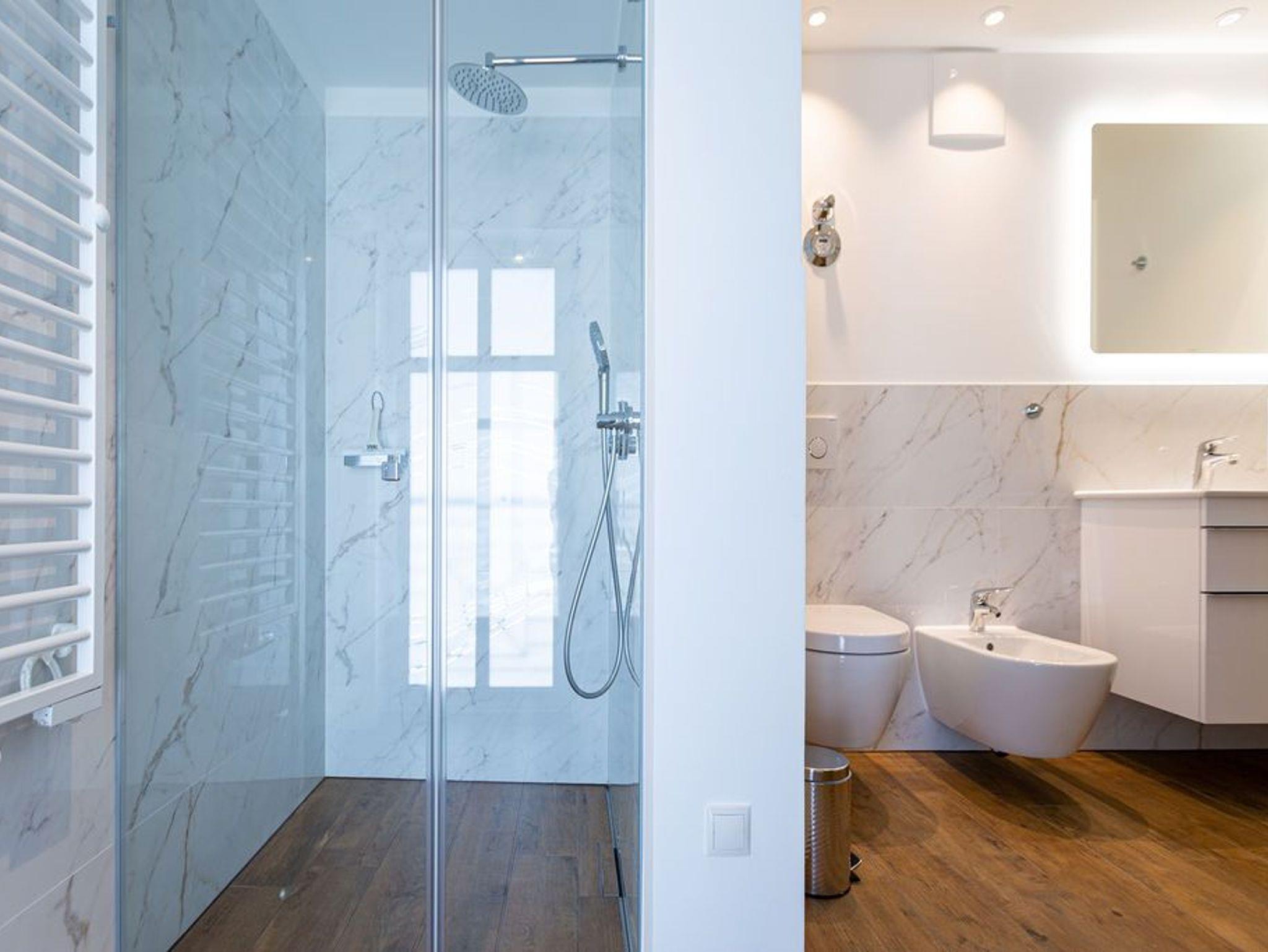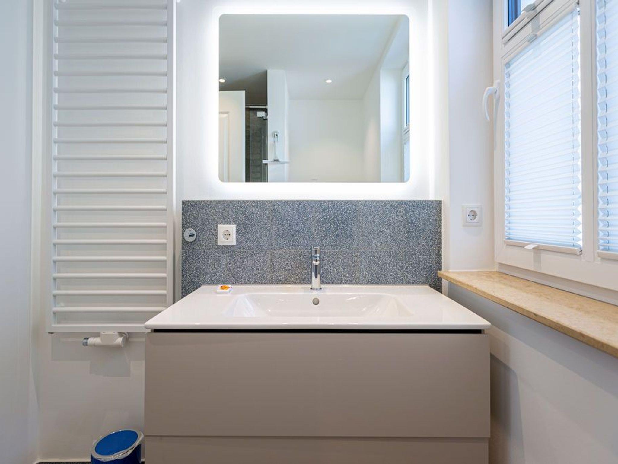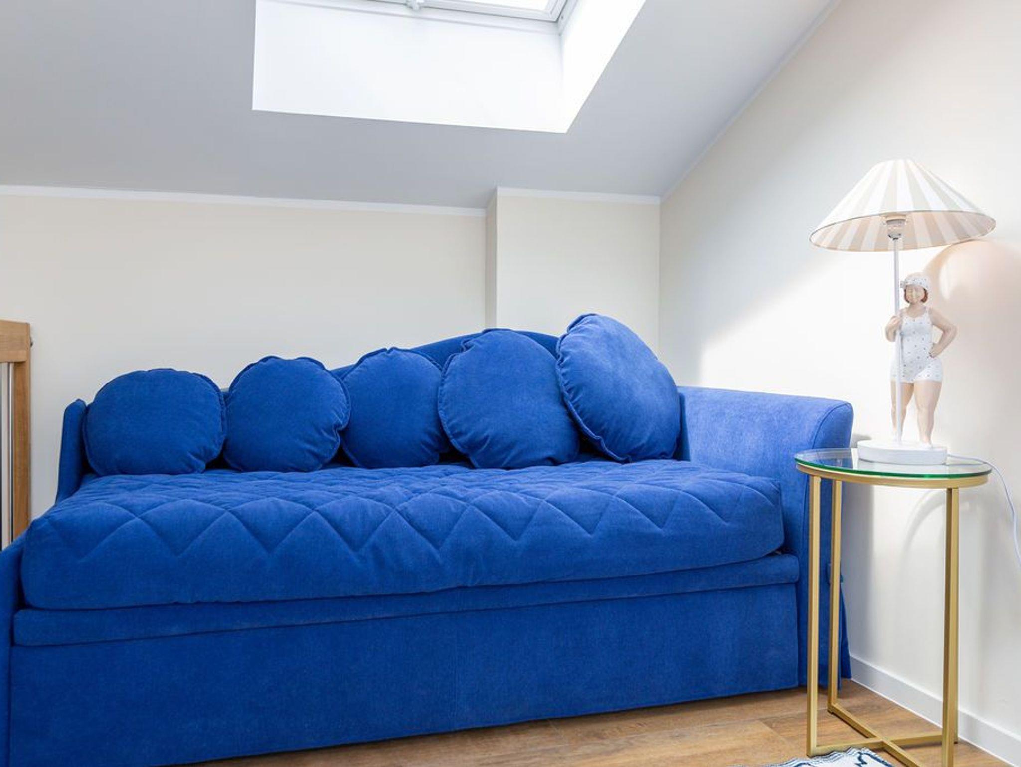 Ein außergewöhnliches Appartement erwartet Sie im ersten Obergeschoss in der Nummer 9a. Offen, großzügig und mit einer lichten Galerie bietet es auf 96 Quadratmetern vier Personen und einem Kleinkind (im Kinderreisebett) viel Platz und ein wunderschönes Ambiente zum Ausspannen. Das Highlight dieses Urlaubsdomizils ist die offene Galerie mit Zugang zur 12 Quadratmeter großen Dachterrasse. Unter freiem Himmel essen oder es sich dort auf den Gartenmöbeln gemütlich machen ? Was will man mehr im Urlaub? Das Appartementinterieur besticht durch elegante Möbel. Skandinavischer Landhausstil trifft auf liebevoll ausgesuchte Kunst und Accessoires. Das schöne, große Wohnzimmer verfügt über eine bequeme Sitzlandschaft, einen Kaminofen und einen Flat-TV. Ein kleiner West-Balkon (5 Quadratmeter) lädt zum Durchatmen ein. Augen zu und genießen. Das Wohnzimmer geht in eine offene Wohnküche mit schönem Esstisch über. In der Küchenzeile finden Sie alles Notwendige. Moderne und hochwertige Geräte erleichtern die Zubereitung der Mahlzeiten und das anschließende Saubermachen. Geschirrspüler, Herd, Kühlschrank mit Gefrierfach, Kaffeemaschine, Wasserkocher, Töpfe und Geschirr ? alles ist da. Die beiden Schlafzimmer sind mit komfortablen Boxspringdoppelbetten (1,80 m x 2,00 m), einem Kleiderschrank und einem Flat-TV ausgestattet. Eines der Zimmer hat ebenfalls Zugang zu dem kleinen Wohnzimmer-Balkon. Bei Anreise sind Ihre Betten bereits bezogen. Das WLAN ist kostenfrei nutzbar. Zwei Tageslicht-Badezimmer sorgen dafür, dass es morgens nicht zum Duschstau kommt. Handtücher liegen bereit. Freuen Sie sich auf die kleine Finnische Sauna im Masterbad. Die kleine Wellnessoase wird Ihnen an kühlen Tagen wohlige Wärme schenken. In der Tiefgarage sind zwei hintereinander befindliche Stellplätze für Sie reserviert. Es gibt einen wohnungseigenen Fahrradkeller.