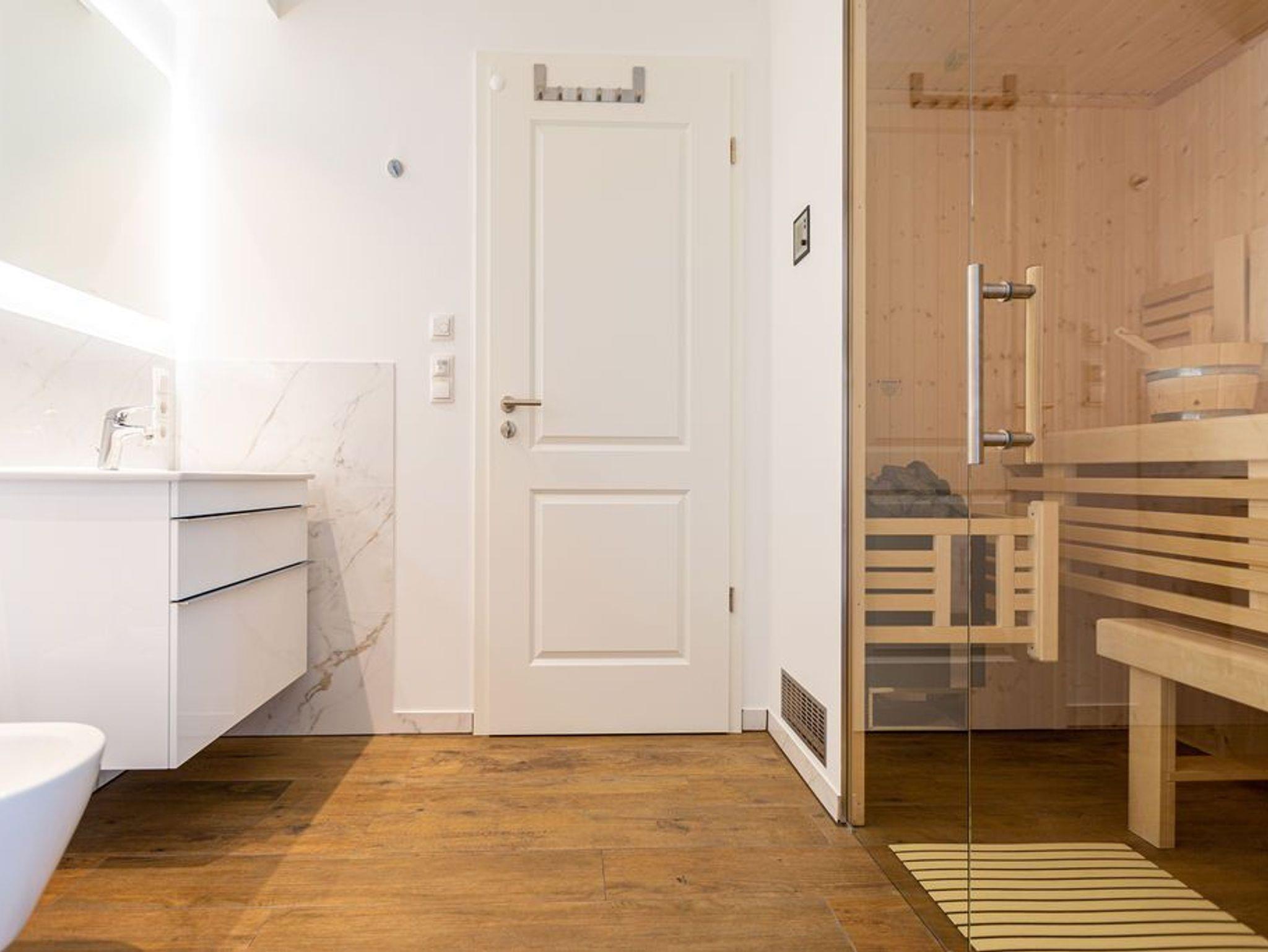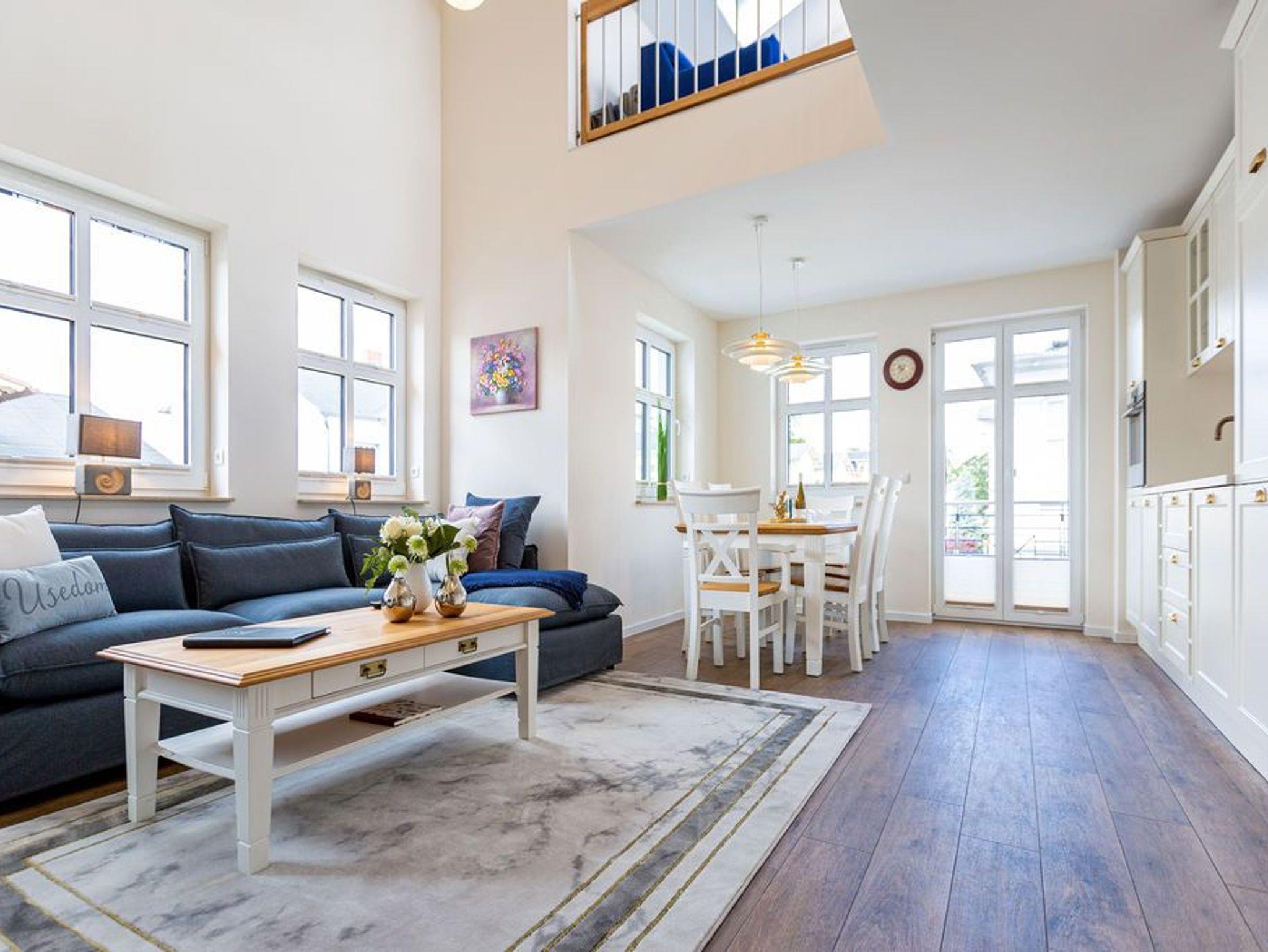 Exklusives Appartement mit Dachterrasse und Sauna nahe Strand in Ahlbeck, ideal für Familien und Erholungssuchende.