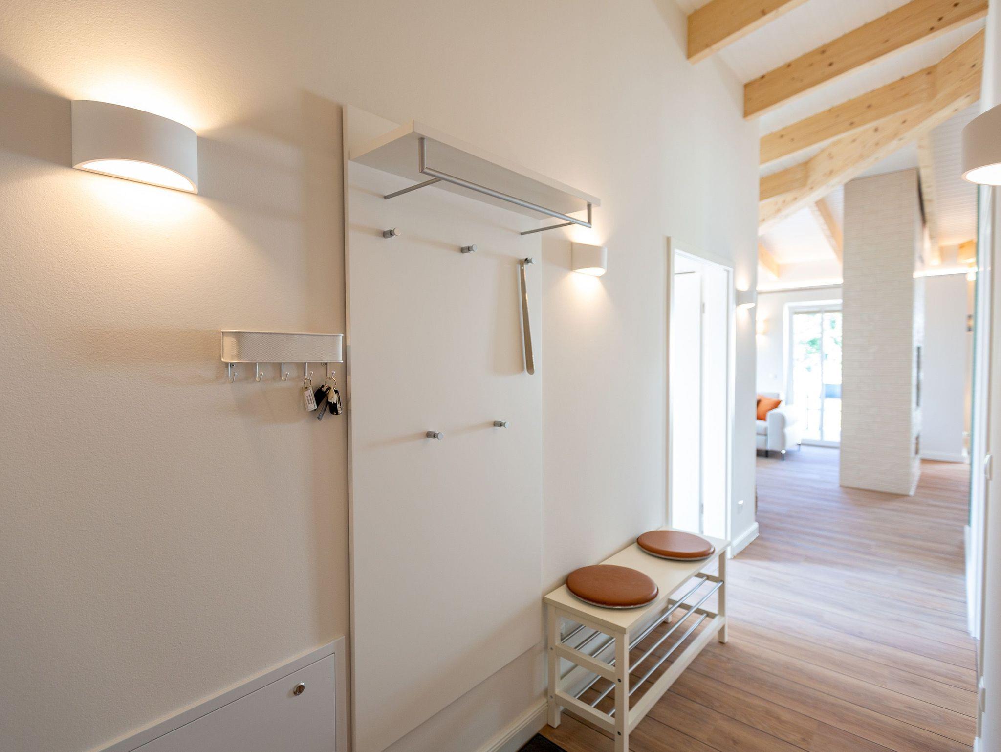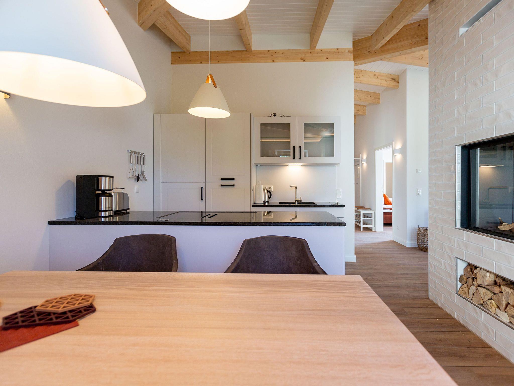 In diesen 2021 errichteten Häusern trifft Helligkeit auf Moderne und bietet Ihnen in seinen stilvoll eingerichteten Zwei- bis Drei-Zimmer Appartements Komfort auf höchster Ebene. Die offen gestalteten Wohn-Ess-Bereiche überzeugen durch ein stylisches Ambiente und ihr großzügiges Raumkonzept. Die teilweise mit Kochinseln ausgestatteten Küchen integrieren sich perfekt in den ebenso schlichten wie modernen Wohnraum. Alle Appartements verfügen über zwei Bäder oder ein Bad und ein zusätzliches Gäste-WC. Um Ihre Auszeit am Meer zusätzlich zu verschönern, wurden alle Appartements mit Gaskamin und Finnischer Sauna ausgestattet. Genießen Sie von den großzügigen Balkonen und Terrassen den Ausblick auf die parkähnliche Grünanlage oder verbringen Sie Ihren Abend auf dem frei zur Verfügung stehenden Grillplatz mit Sitzecke und Grill. Ein kostenloser PKW-Stellplatz in der Tiefgarage (Einfahrtshöhe 1,95m, Anfahrt über die Straße ?Kieferngrund? Höhe Hausnummer 17) gehört ebenso zum Komfort dieser Appartement-Häuser wie kostenfreies W-Lan. Für E-Autos steht am Objekt eine E-Ladesäule mit 2 Ladeplätzen (gesamt 22 kW) auf dem Grundstück kostenpflichtig zur Verfügung. Eine Waschmaschine und ein Trockner können Sie gegen Gebühr über die kostenlose App WeWash nutzen.