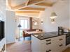 Sanfte Erdtöne und eine sichtbare Holzbalkendecke machen dieses 66qm-Appartement im Dachgeschoss zu einem außergewöhnlichen Aufenthaltsort für Ihren Ostseeurlaub. Ob Zeit zu Zweit, zu Dritt oder als kleine Familie mit Kleinkind (bis 2 Jahre im Kinderreisebett) - genießen Sie in diesem Zwei-Zimmer-Appartement jeglichen Komfort in Wohlfühlatmosphäre. Ein Materialmix aus Stein, Holz und edlen Stoffen wie Leder und Satin versprühen einen eleganten und wohligen Charme. Dank bodentiefer Fenster ist dieses Appartement besonders hell und freundlich, lässt sich durch Plissees und Vorhänge jedoch abdunkeln. Im Wohnbereich sorgt neben einem Flat-TV mit Soundsystem ein zweiseitiger Gaskamin für entsprechende Gemütlichkeit. Die offen gestaltete Küche mit ihren hochwertigen Elektro-Geräten inklusive Kochinsel mit Kochfeld mit integriertem Dunstabzug sorgen für angenehmen Komfort bei der Zubereitung Ihrer Speisen. Neben einem Gäste-WC verfügt das Duschbad mit barrierefreier Regendusche über ein Deckenfenster, welches für angenehmes Tageslicht sorgt. Selbstverständlich gehört auch in diesem Appartement eine Finnische Sauna zu Ihrem Urlaubskomfort. Damit Sie in Ihrem Urlaub auf nichts verzichten müssen, bietet das ans Schlafzimmer angrenzende Ankleidezimmer ausgiebigen Stauraum für Ihr Gepäck. Erholen Sie sich auf dem 1,80m x 2,00m komfortablen Boxspringbett vom Strandtag oder genießen Sie die letzten Sonnenstrahlen auf dem Süd-Balkon von Ihrem Schlaf- und Wohnzimmer aus. Einen zusätzlichen Schlafplatz bietet die komfortable Wohnlandschaft im Wohnzimmer. Kostenfreies W-Lan und ein Stellplatz in der hauseigenen Tiefgarage runden Ihren perfekten Urlaub auf der Insel Usedom ab. Auf Grund der großzügigen Platzgestaltung ist die Wohnung auch für Gäste mit Beeinträchtigungen geeignet.
