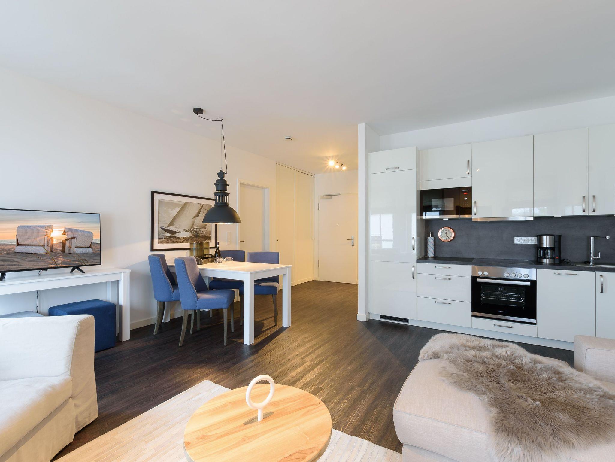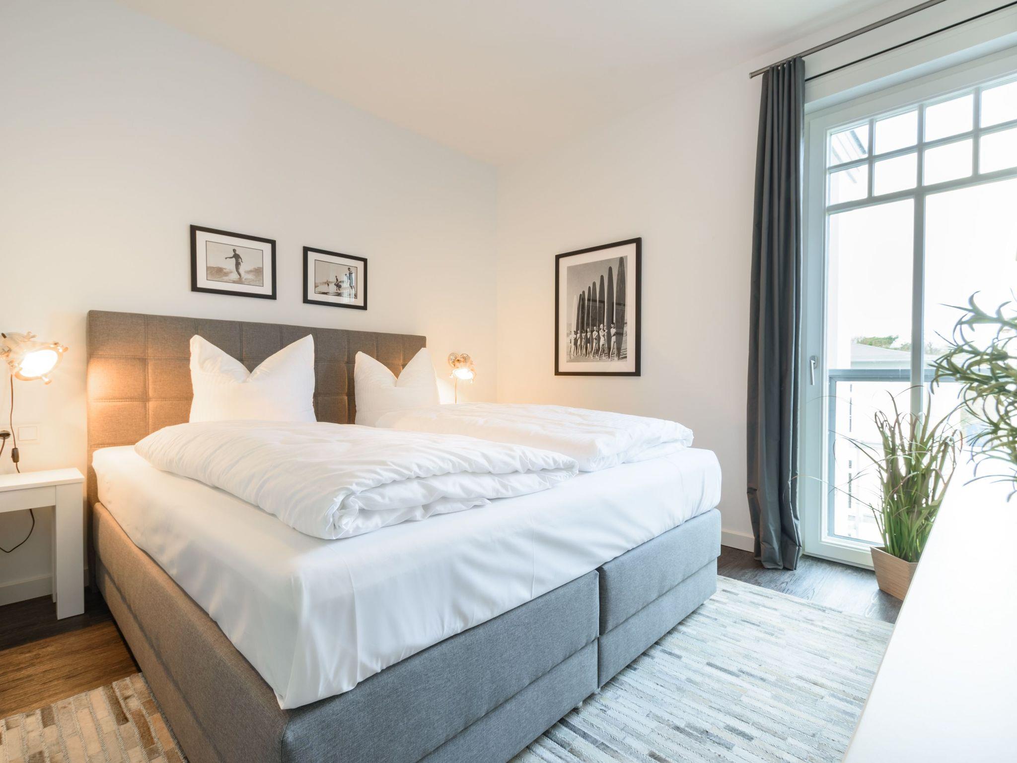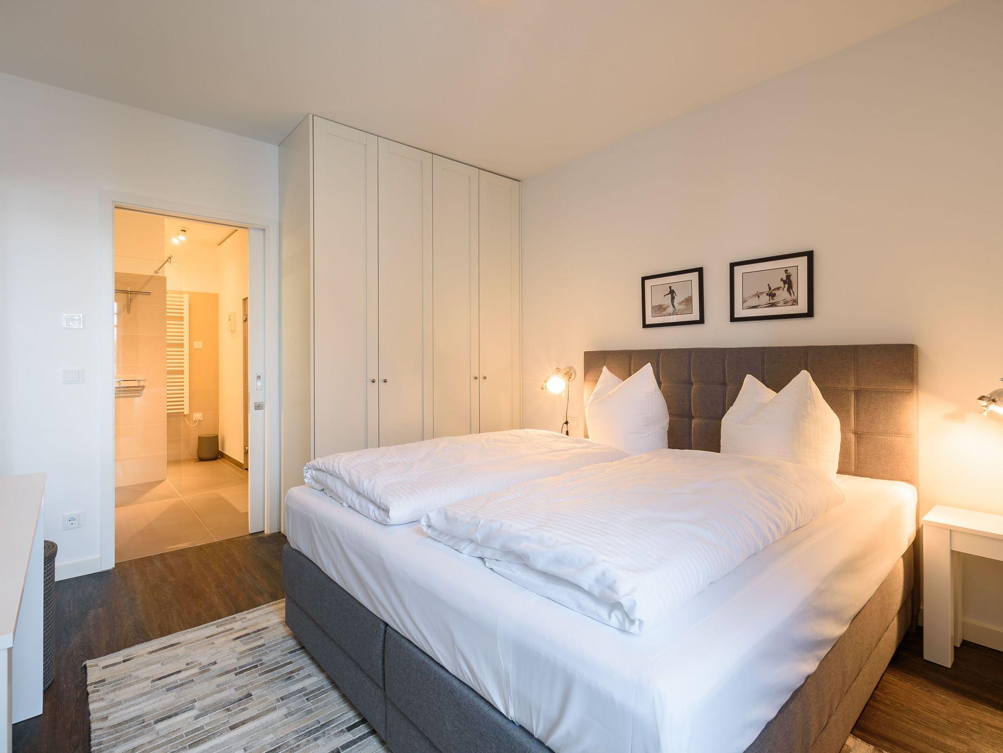 Das Appartement 17 in der Villa Westend, gelegen im 2. Obergeschoss, bietet auf 77 Quadratmetern Platz für bis zu 4 Personen und verbindet luxuriösen Wohnkomfort mit direktem Meerblick. Erleben Sie einen unvergesslichen Urlaub mit folgenden Annehmlichkeiten: