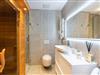 Das exklusive Badezimmer lässt keine Wünsche offen: Neben einer Echtglas-Regendusche und hochwertiger Naturstein-Ausführung erwartet Sie eine Infrarot-Saunakabine für pure Entspannung. WC und Haartrockner runden das Wohlfühlpaket ab. Tipp: Brennstoff für den Bioethanol-Kamin können Sie bequem im Rahmen Ihrer Buchung hinzubuchen.