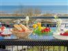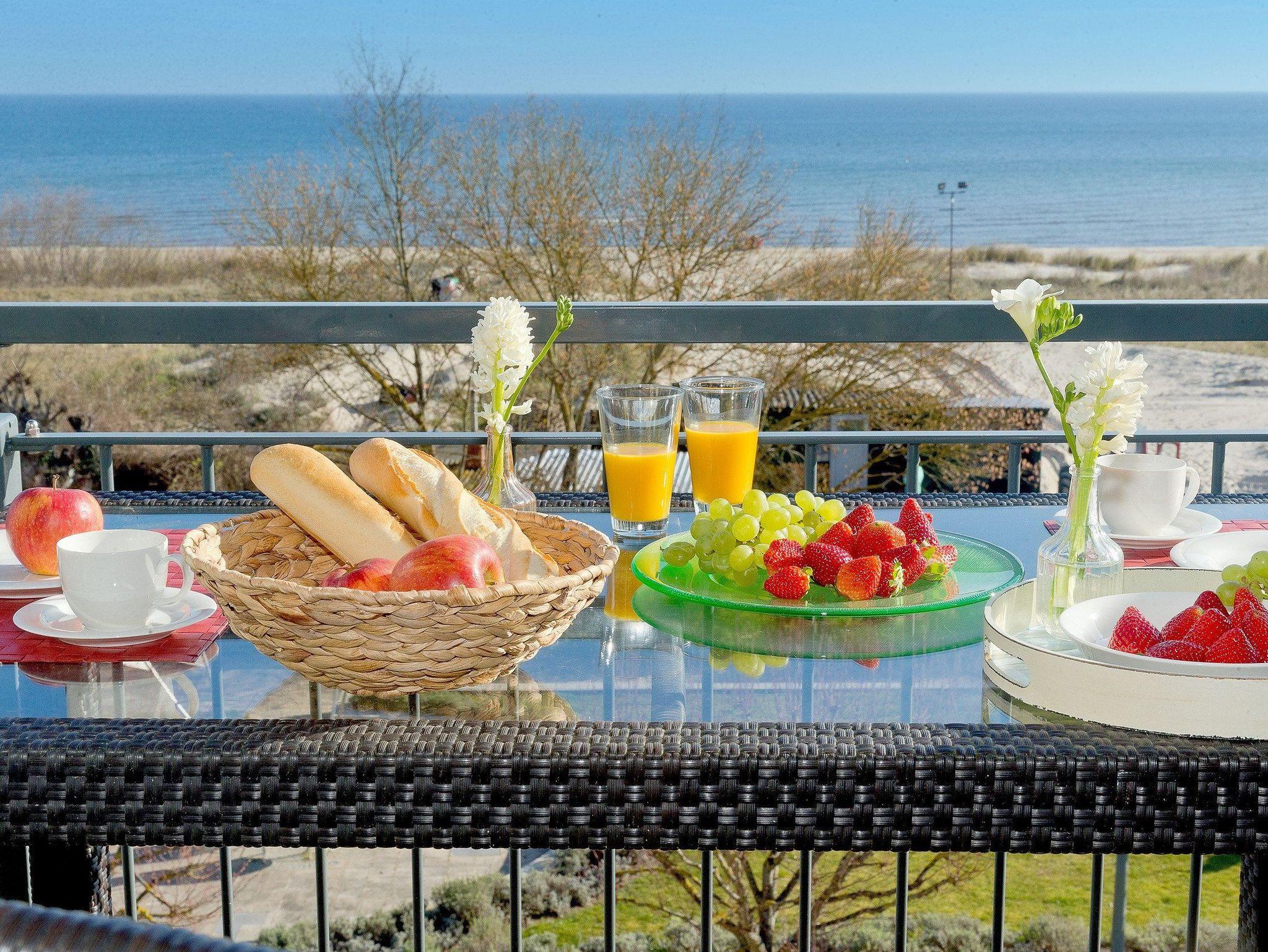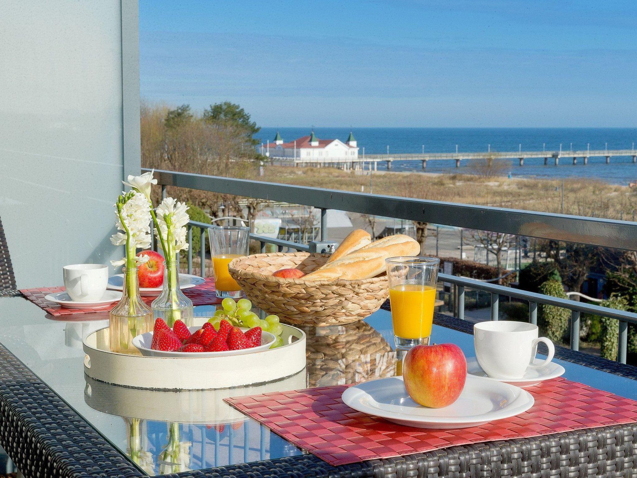 Auf dem großzügigen Nordost-Balkon können Sie das Frühstück bei fantastischem Sonnenaufgang und traumhaftem Meerblick genießen. Ein absolutes Highlight ist der Blick auf die Seebrücke Ahlbeck, die älteste Seebrücke Deutschlands.
