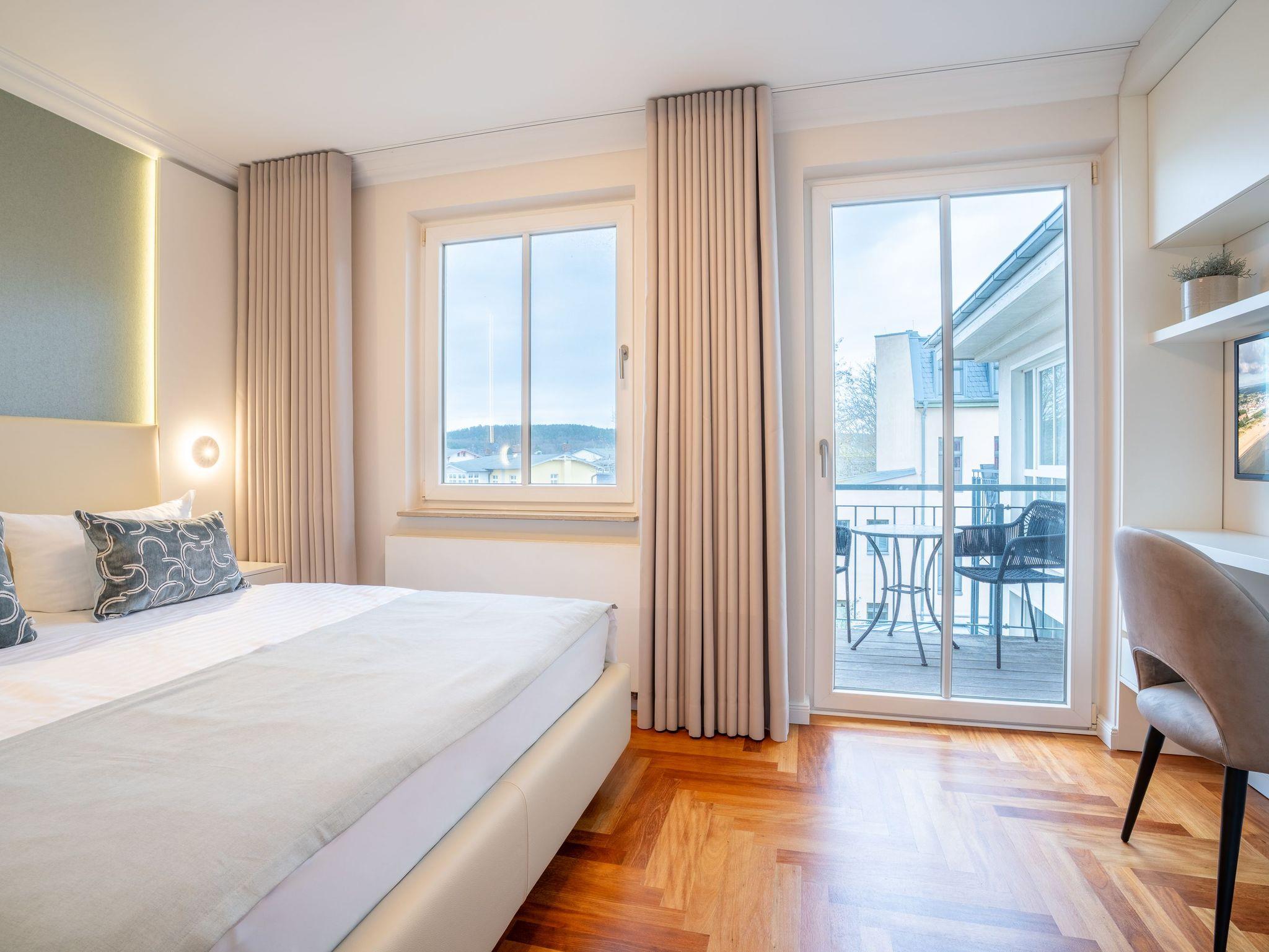 Genießen Sie Luxus und Ostseeblick in der Villa Louise App. 10 in Ahlbeck mit Sauna und Balkon.