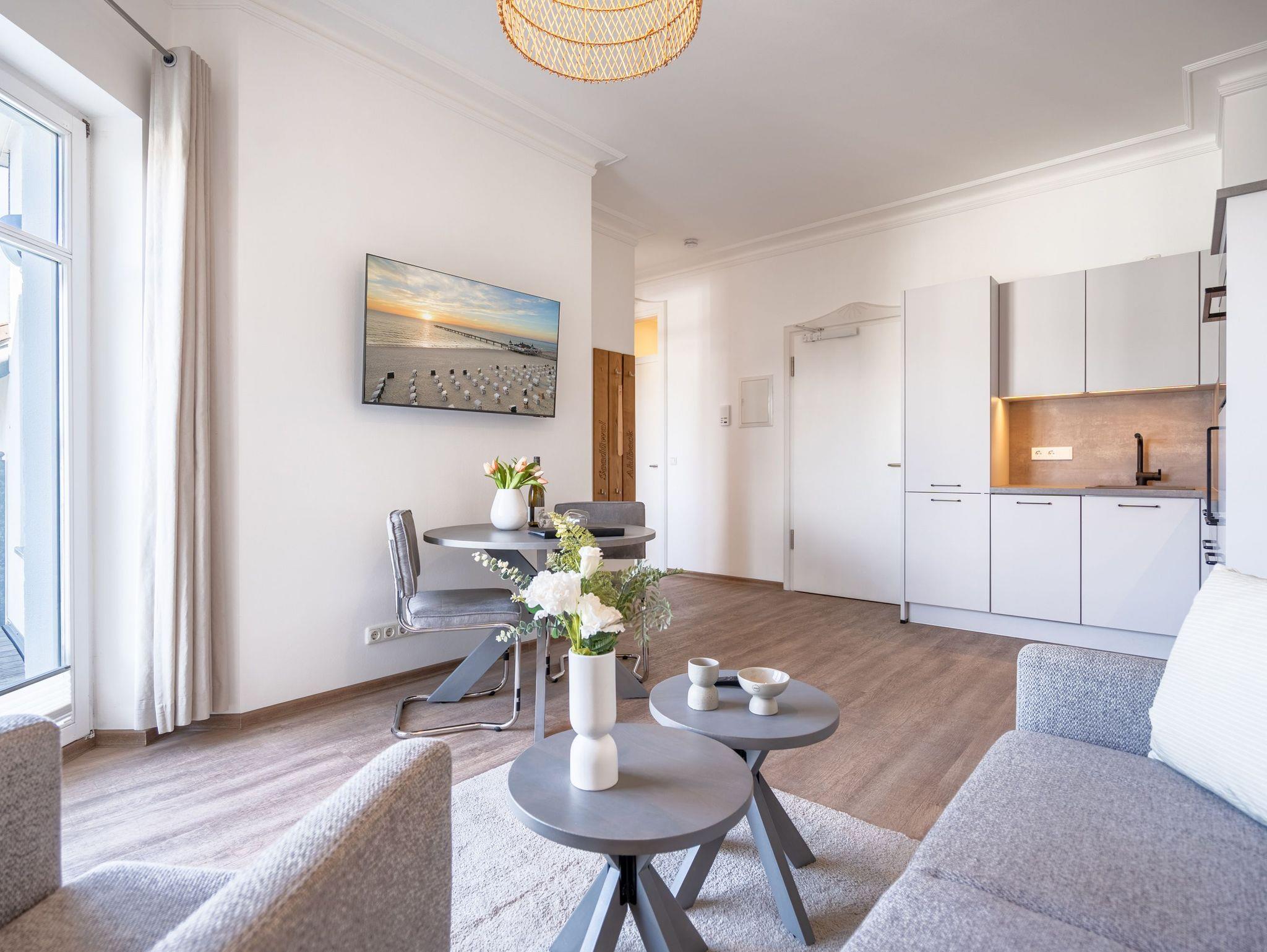 Moderne 2-Raum-Ferienwohnung mit Balkon und Blick nahe der Ahlbecker Seebrücke.