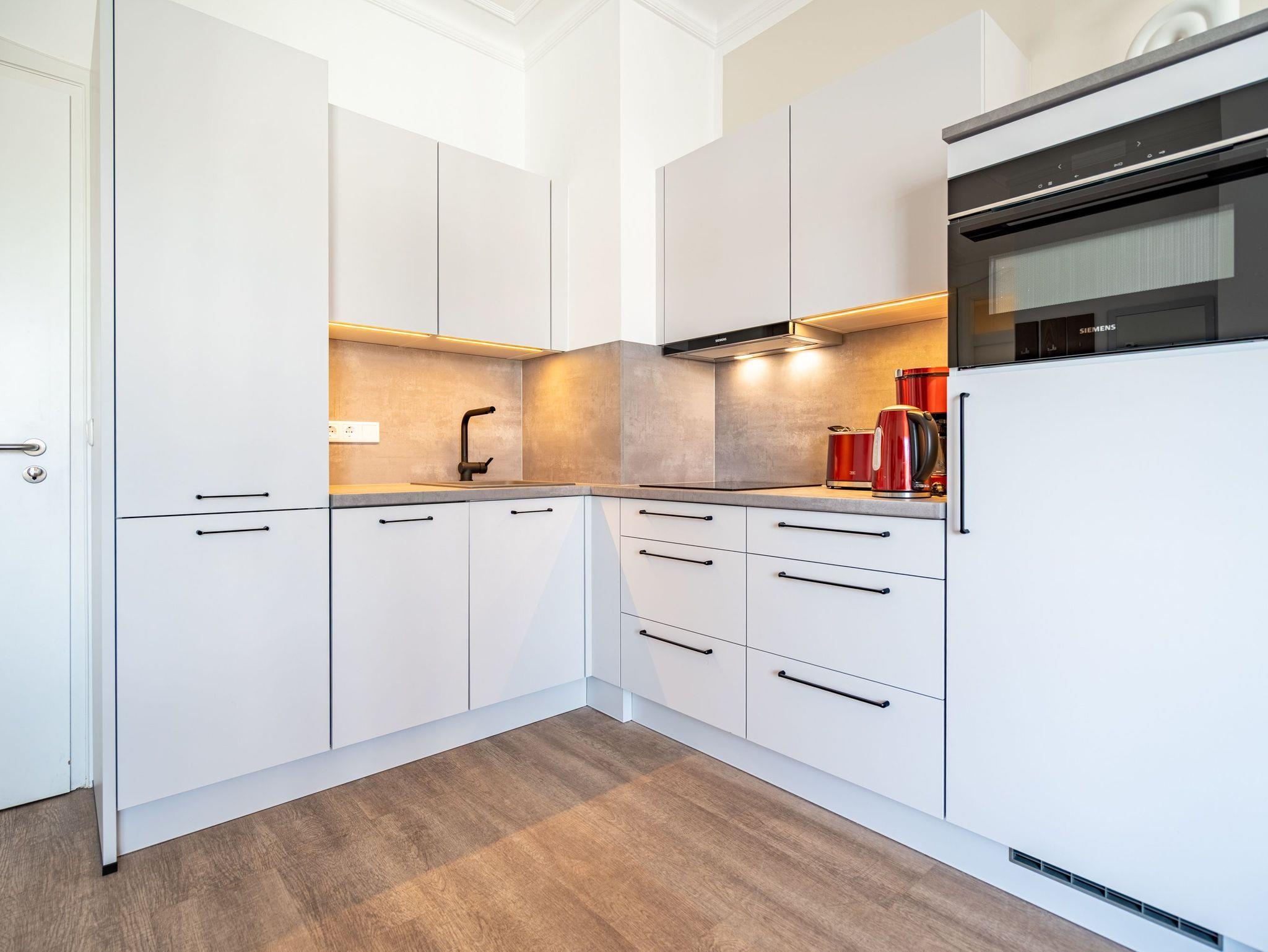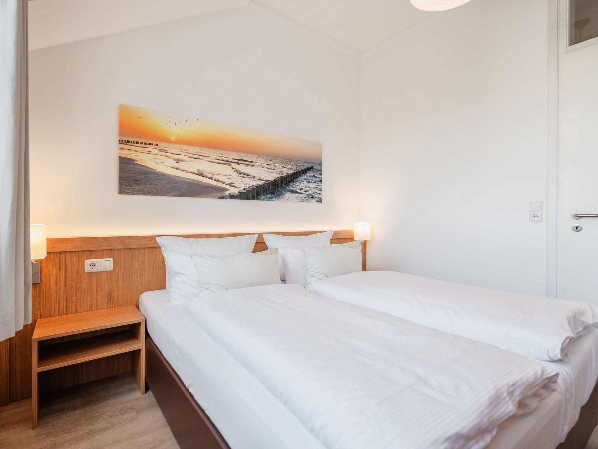 Die 2-Raum-Ferienwohnung Nr. C10 in der Villa Seedüwel bietet auf 38 qm Platz für zwei Personen und befindet sich im 2. Obergeschoss. Der offene Wohnbereich umfasst eine Küchenzeile mit einem Induktionskochfeld, einer Mikrowelle und einem Kühlschrank mit Gefrierfach. Ein Essplatz für zwei Personen, eine gemütliche Sitzgruppe und ein Flat-TV runden den Wohnbereich ab. Vom Wohnbereich aus gelangen Sie auf den ca. 4 qm großen West-Balkon, wo Sie entspannen können. Das Schlafzimmer ist mit einem Doppelbett (1,60 m x 2,00 m) und einem Kleiderschrank ausgestattet. Das innenliegende Bad verfügt über eine Dusche und ein Waschbecken, zudem gibt es ein separates WC. Ein Stellplatz in der Tiefgarage ( Einfahrthöhe 2,03m) des benachbarten Hauses „Strandterrasse“ ist für Sie reserviert. WLAN steht Ihnen kostenfrei zur Verfügung.