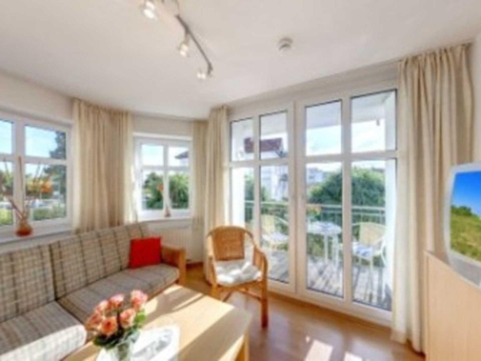 Schönes geräumiges 2-Zimmer-Appartement mit moderner, guter Ausstattung und ausschnittweisem Seeblick. Separates Schlafzimmer, Wohnzimmer mit Küchenzeile und Essplatz, Bad mit Wanne mit Duschtür, Balkon nach Osten - zum Frühstück in der Sonne. Die Wohnung verfügt über einen Tiefgaragen-Pkw-Stellplatz. In der Garage können auch Fahrräder und ähnliches untergestellt werden. Von der Villa Aquamarina sind es zum Ortszentrum und der Seebrücke ca. 3 Minuten zu Fuß. Zum Strand sind es 50 m. Die Wohnungen der Villa Aquamarina verfügen alle über passwortgeschütztes WLAN (gerätegebunden, Euro 1,50 pro Tag und pro Gerät).