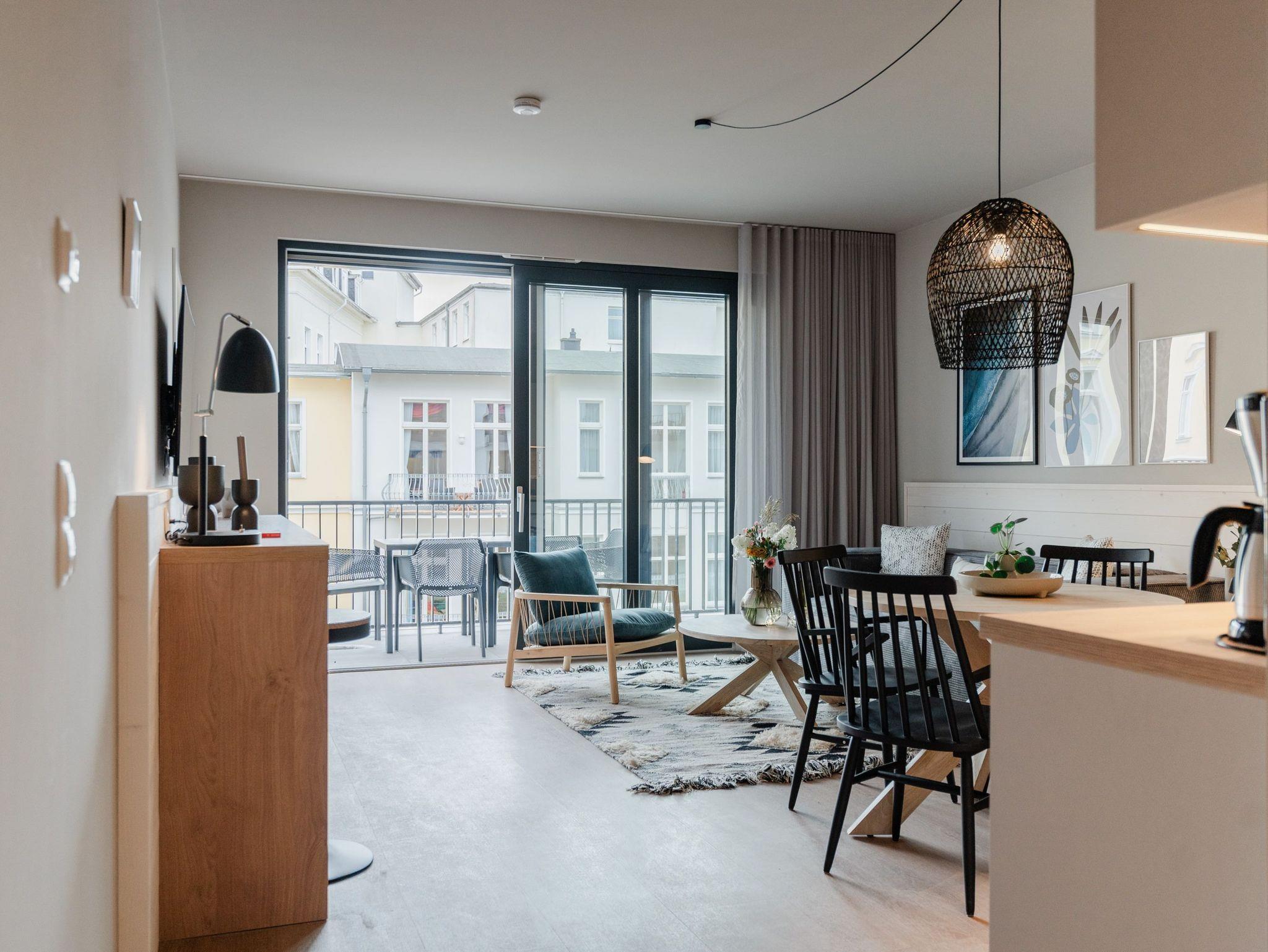 Modernes Appartement an der Ostsee mit zwei Balkonen und Infrarotsauna, nur 80 Meter vom Strand entfernt.