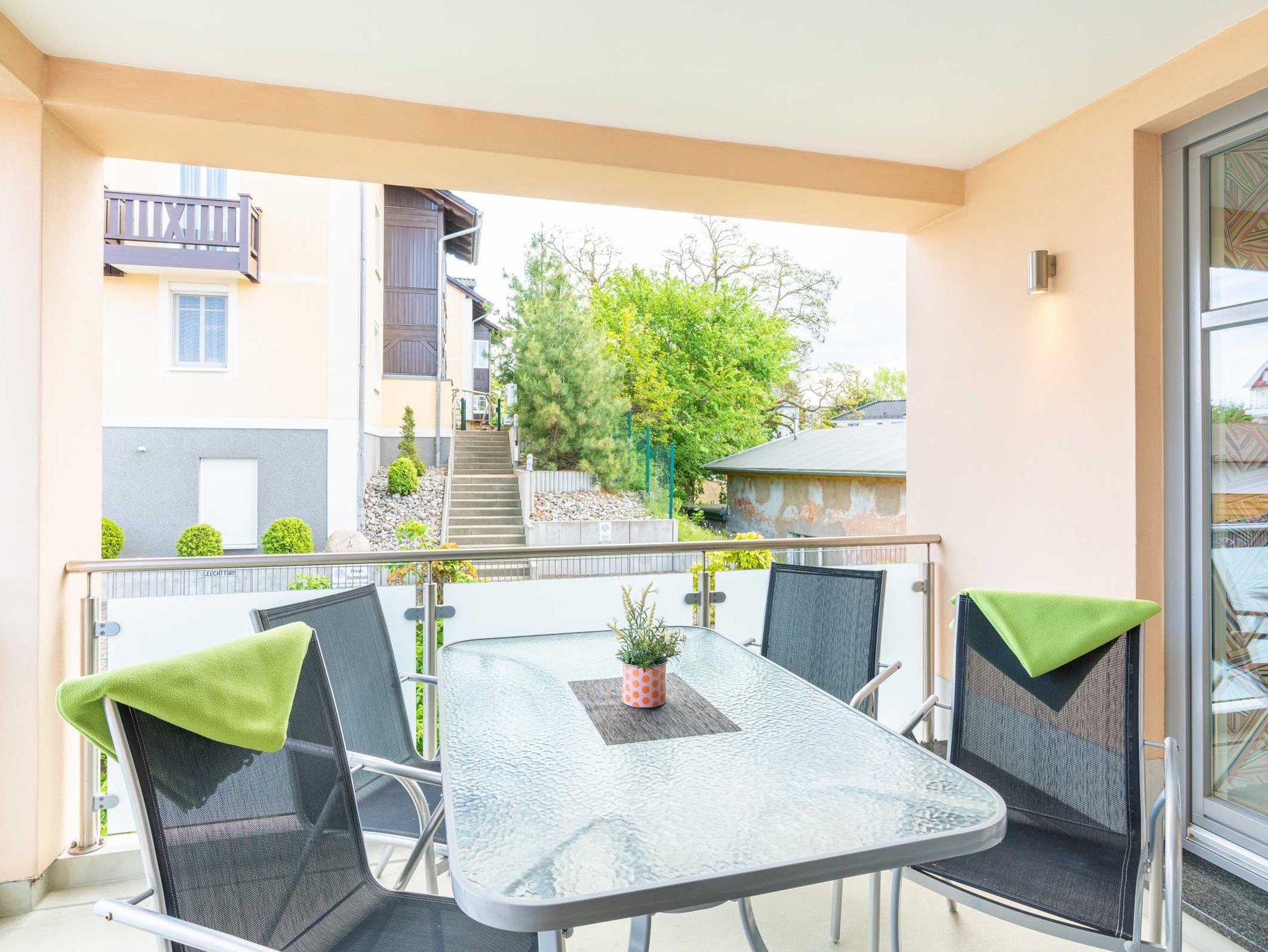 Modernes Nichtraucher-Appartement nahe Strandpromenade in Ahlbeck mit Kamin und Balkon.