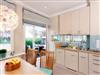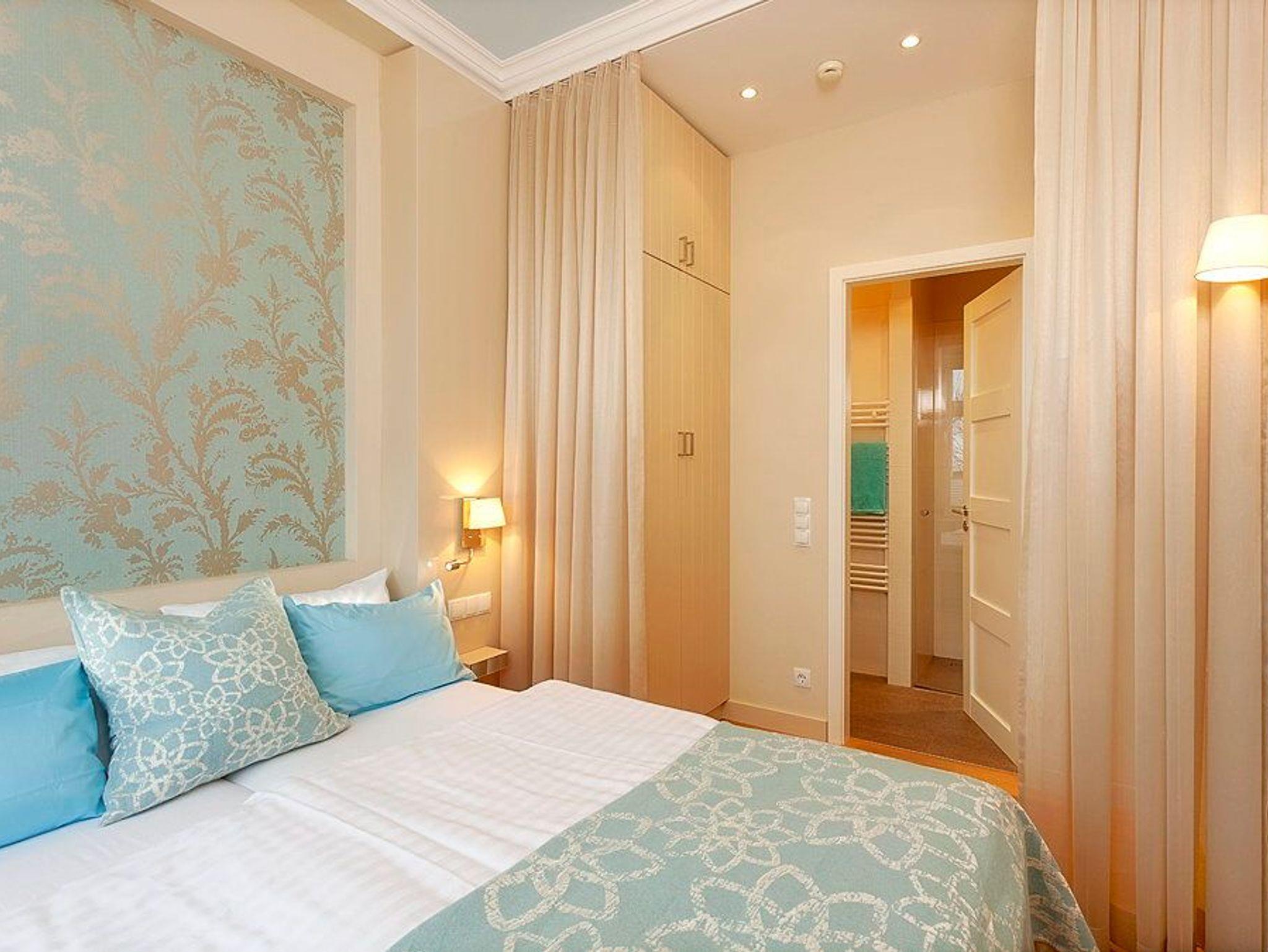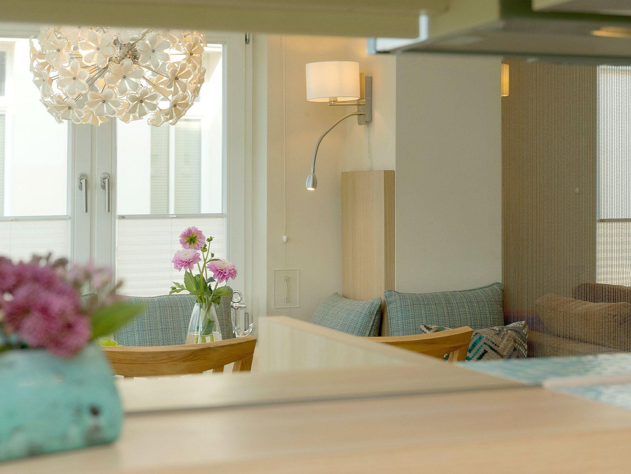 Die Wohnung wurde von einem Innenarchitekten gestaltet. Die harmonische Farbwelt aus Pastell- und Blautönen greift die Nähe zum Meer auf und schafft eine ruhige, stimmige Atmosphäre, in der man sofort ankommt.